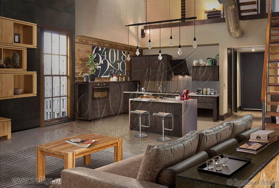 Корпусная мебель в лофт-интерьере используется чаще всего, так как данный стиль предполагает расположение мебели на некотором расстоянии от стены. Она универсальна, практична, ее можно поставить в любом подходящем по параметрам месте. Чаще всего используются столы, комоды, стулья и этажерки, которые обязательно должны быть изготовлены из натуральной древесины.