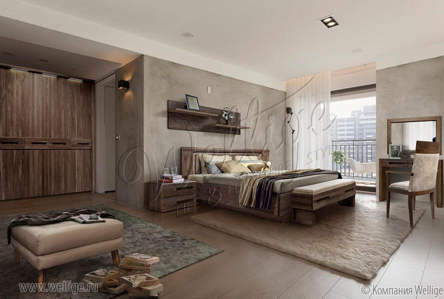 Банкетка в стиле лофт в современных спальнях выполняет ряд функций: