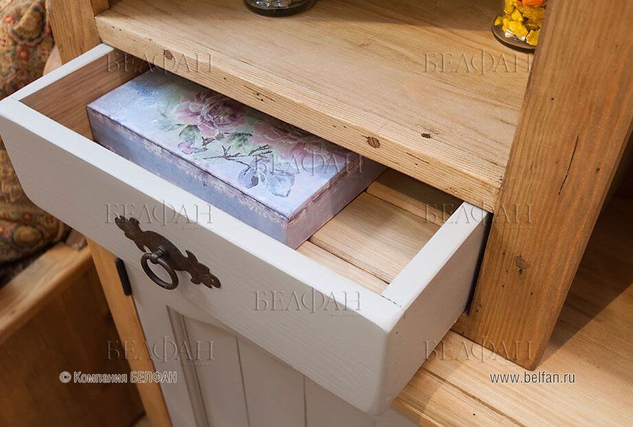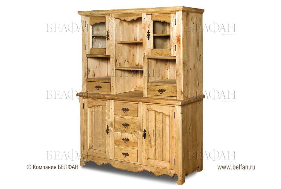 Это направление в настоящее время находится на пике популярности. Мебель в таком стиле напоминает старинную. Она может иметь резные ножки, вензеля, кованые ажурные вставки. Буфет для кухни в стиле прованс может быть открытым, обычно он окрашен в светлые тона. В приоритете оттенки белого цвета или приглушенные пастельные оттенки. Материалом изготовления должно быть дерево, при этом желательно, чтобы оно было искусственно состаренным.