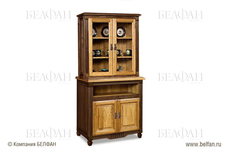 - верхнюю – закрывается, как правило, стеклянными или сплошными дверцами, основная функция которых – защитить посуду от пыли.