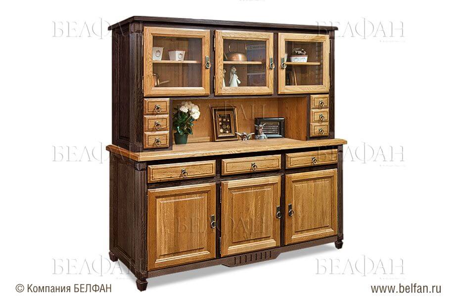- Дерево – эстетически красивый, долговечный и прочный материал. Из него изготавливают мебель высокого качества, отличающуюся роскошным внешним видом. Следует знать, что буфеты для кухни из дерева могут коробиться под воздействием воды и температуры. Поэтому они требуют к себе особого ухода. Тем не менее, мебель из массива дерева в настоящее время является выбором огромного множества людей, ценящих качество и особую эстетику этого натурального материала.