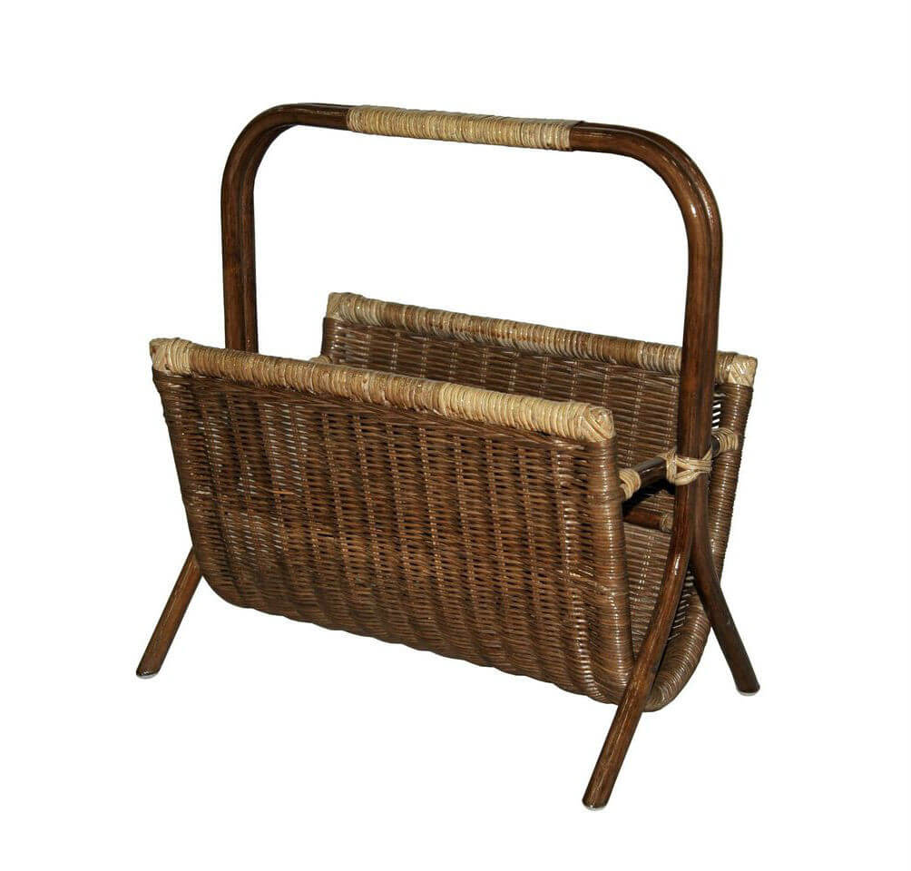 Оригинально и сообразно стилю смотрятся разнообразные плетеные газетницы. Материалом может быть ротанг, ива или даже тонкий хворост.