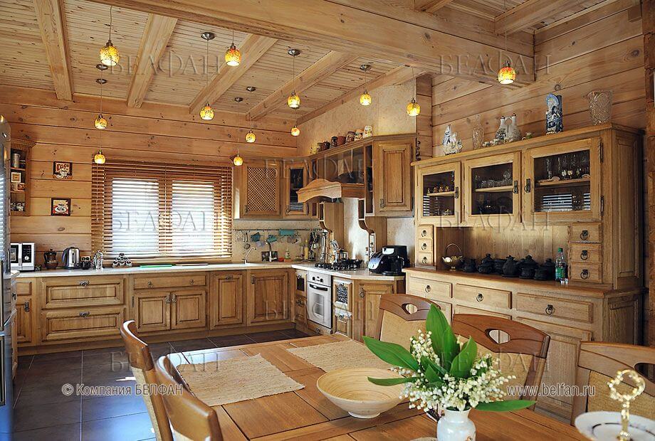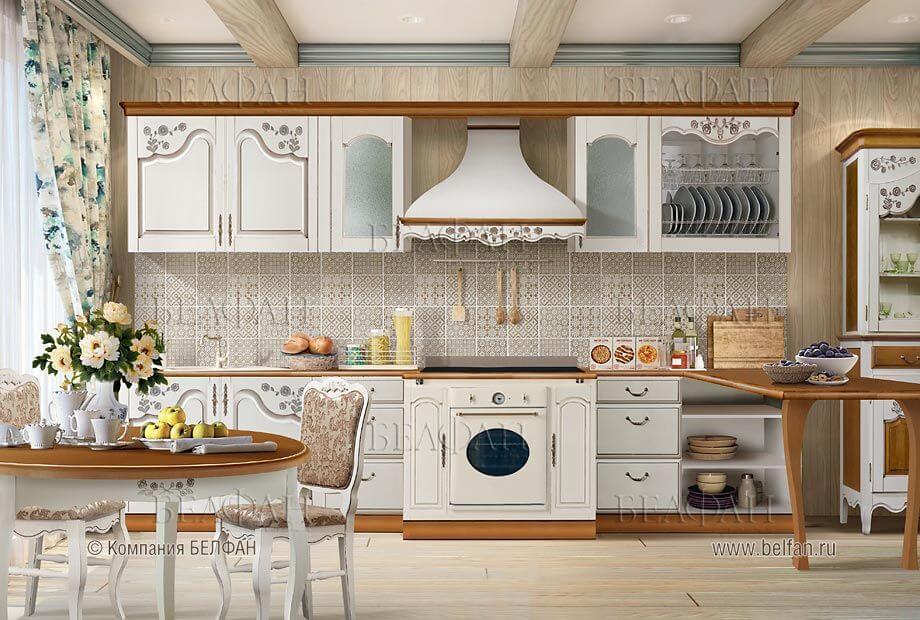 Данное направление берет начало в эпоху колонизации (XVI век). Здесь главными элементами выступают деревянные балки, этнические аксессуары и декор, тяжелая мебель из натуральных материалов. Для интерьера кухни в бежевых тонах подойдут темные оттенки, максимально приближенные к природной древесине.
