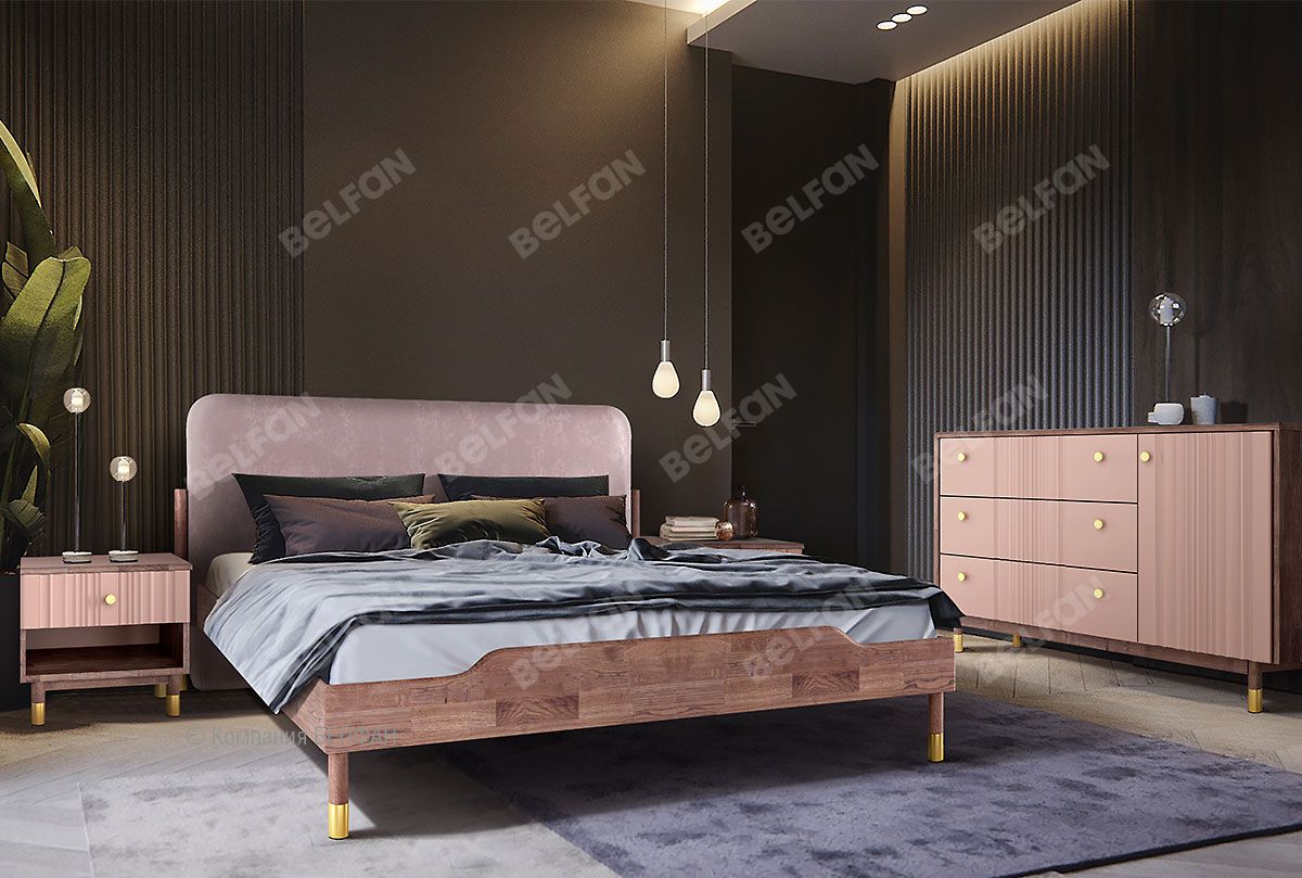 Некоторые модели имеют изогнутое изголовье, которое можно рассматривать в качестве отдельной детали интерьера, отделяющего спальное место от окна или стены. Подобные спинки могут быть намного шире самого ложа, не только отделяя его, но и захватывая прикроватные тумбы. Такой дизайнерский ход объединяет все элементы спального места в единый ансамбль.