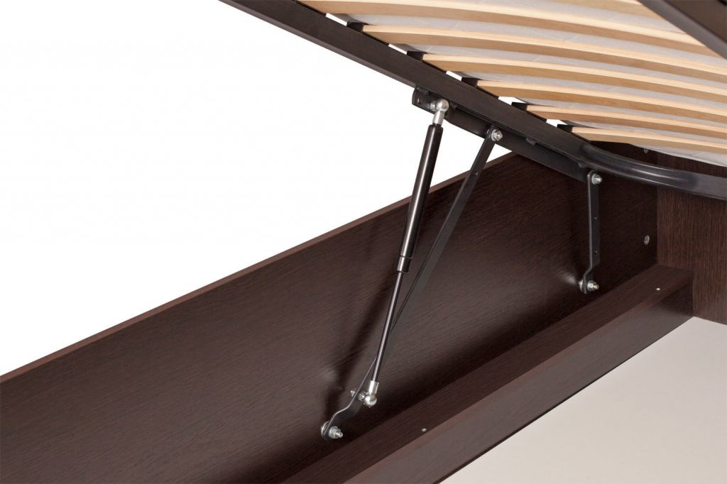 - Односпальной кроватью с подъемными механизмами. В таком случае поднятое основание с матрасом открывает вместительное отделение для хранения.