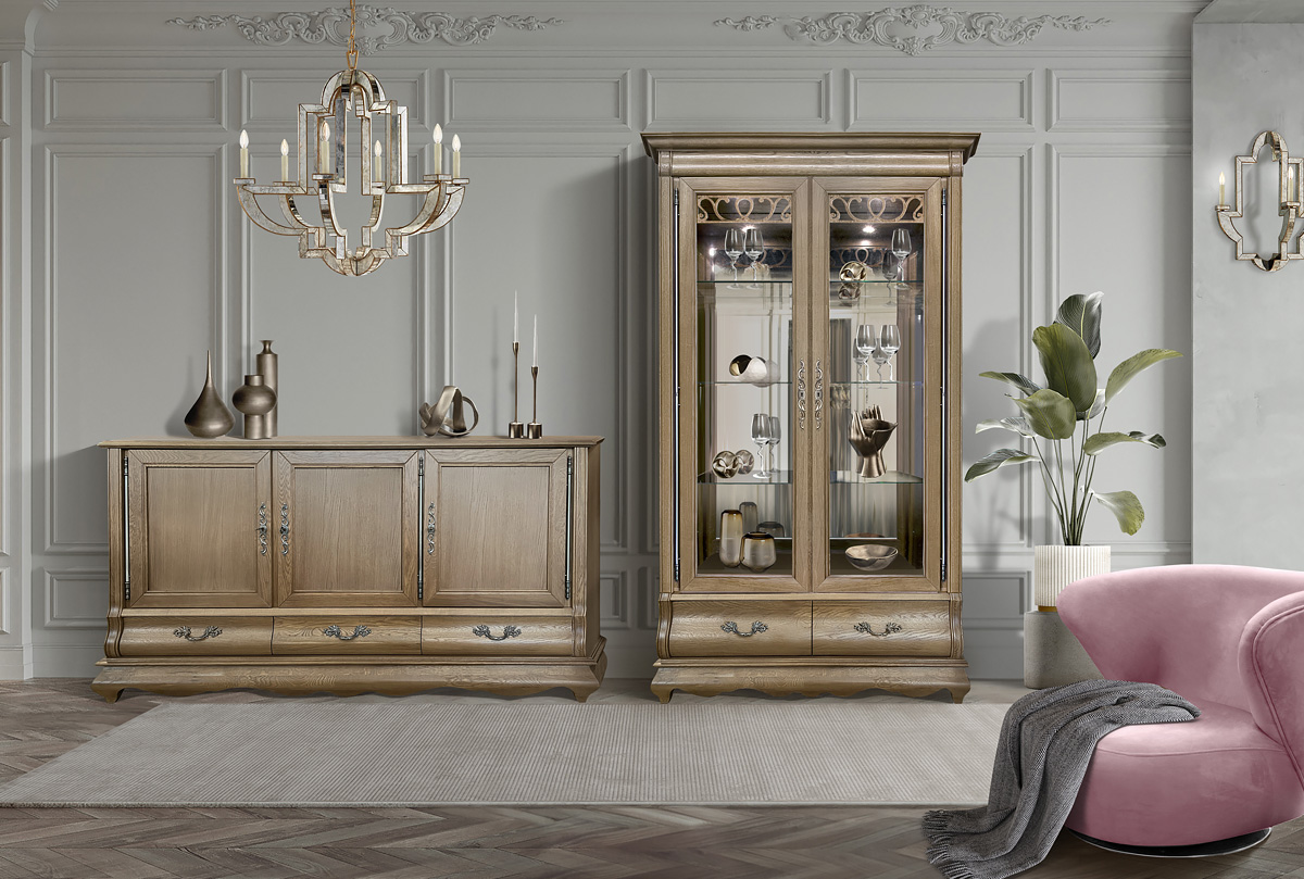 - Классическая деревянная мебель сделана из дуба, ореха, вишни или качественно стилизована под натуральное дерево.