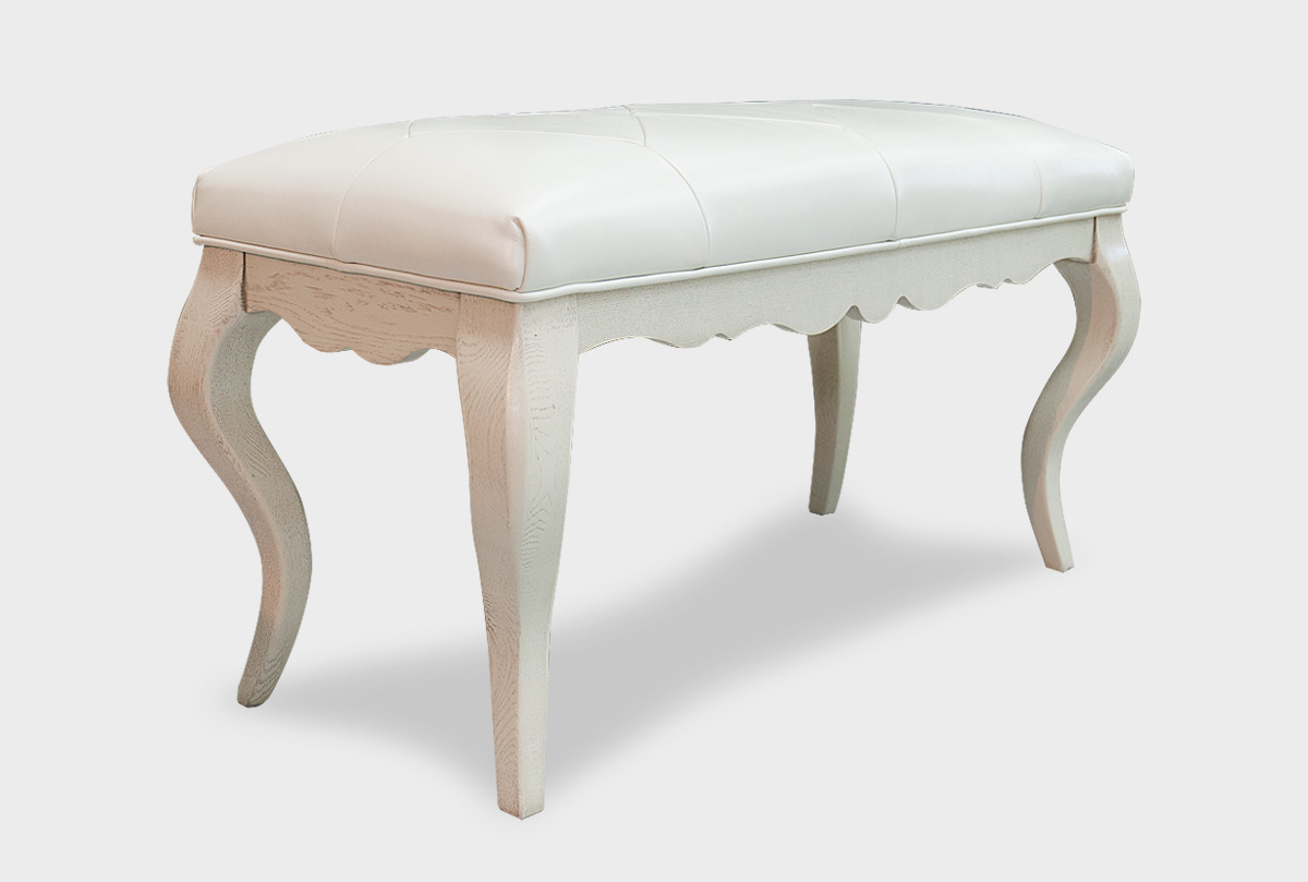 С момента своего появления и до нашего времени банкетка не утратила своей актуальности. Она способна привнести в дом атмосферу роскоши и уюта, поэтому и гостям и хозяевам будет приятно присесть на оригинальную большую банкетку из массива дуба «Тэфи» в цвете «белая эмаль с темной патиной», обтянутую мягкой натуральной кожей. Ее изюминка – это плавно изогнутые устойчивые ножки и изящные волны в нижней части сиденья.