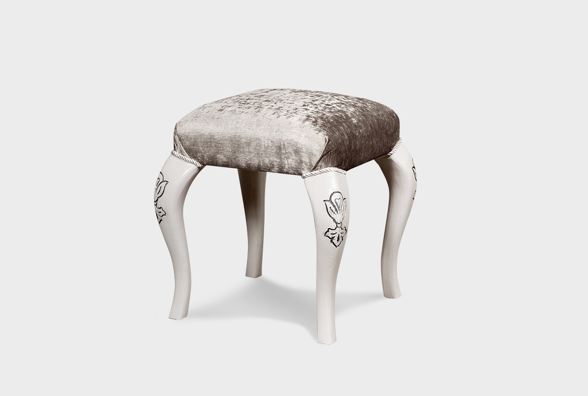Особенности банкетки «Трио» в цвете «белая эмаль с золотой патиной» с тканью «И-11»: