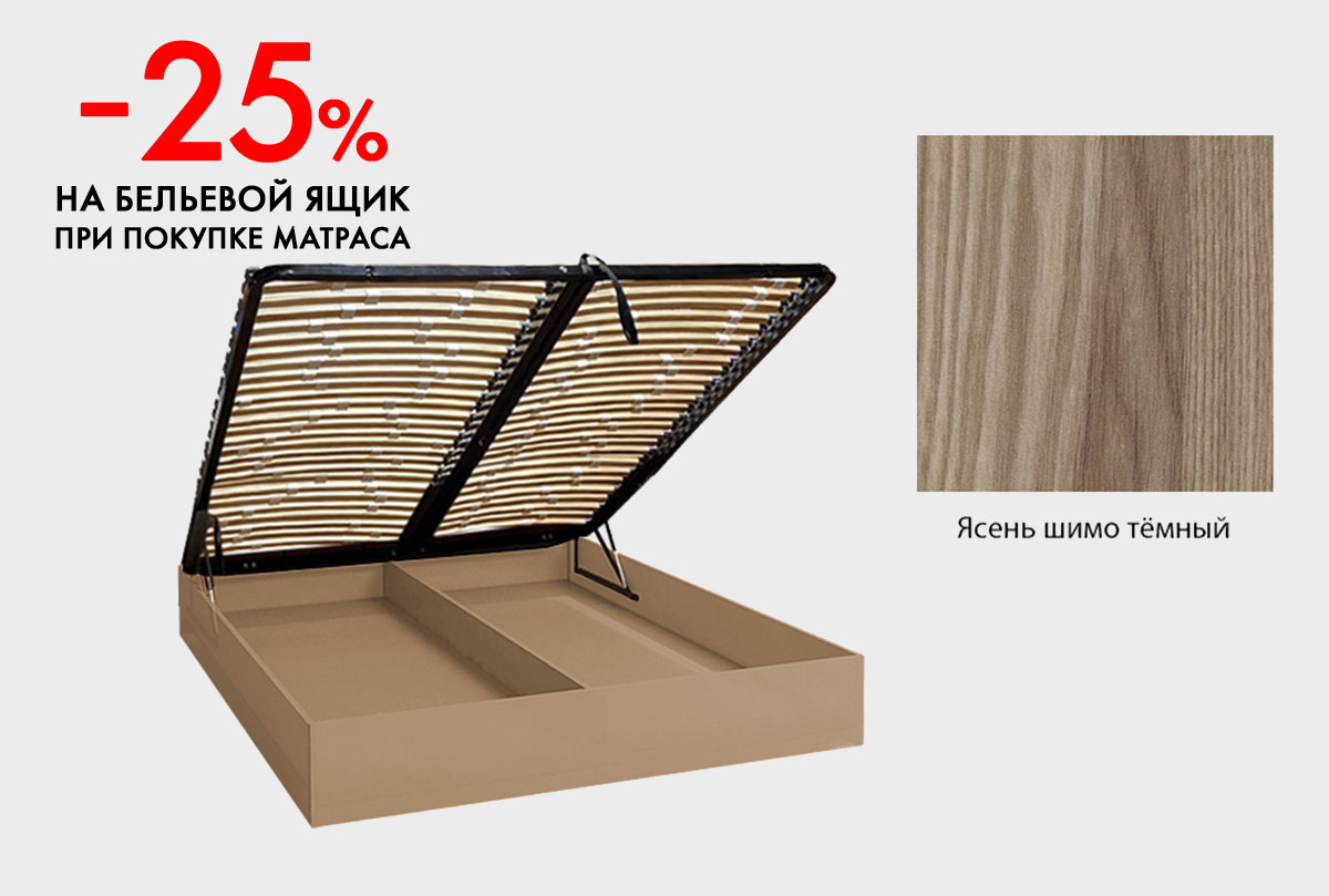 Угол открывания подъёмного механизма 36 градусов. Функционален, практичен и, с экономической стороны, полностью оправдывает вложения. Изготавливается в различных цветах. Размер ортопедической решетки по длине: 1950 мм, высота ящика – 230 мм. Ящик устанавливается на пол (дополнительно может крепиться к спинке и царгам кровати). При ежедневном использовании бельевого ящика с подъемным механизмом рекомендуем использовать простынь на резинке.