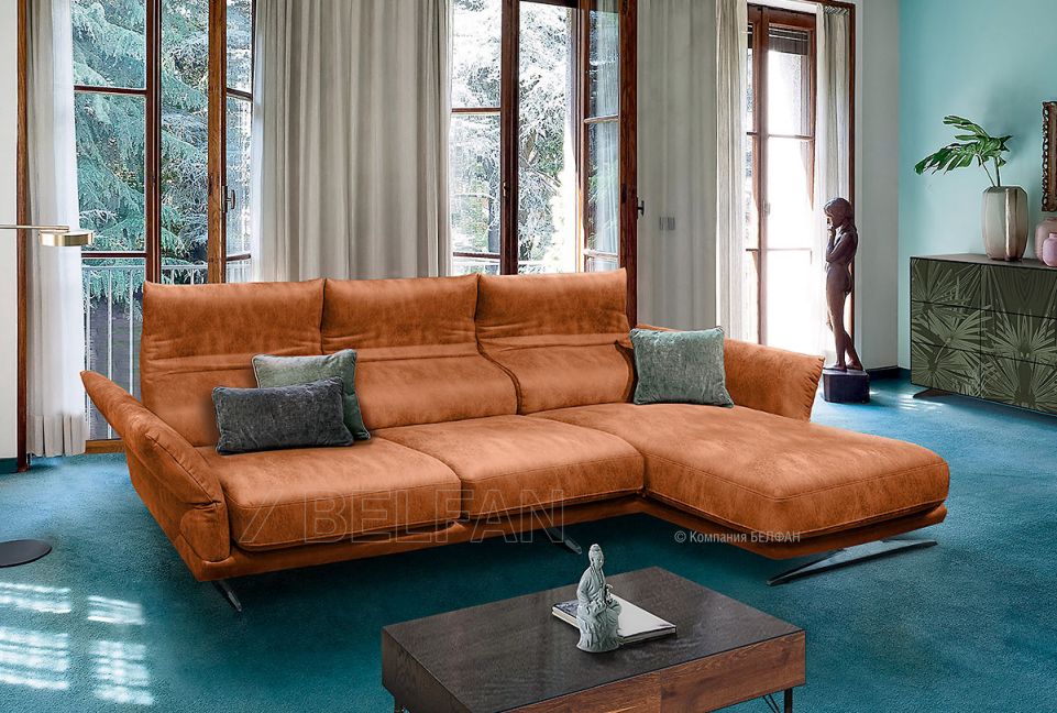 Не перегруженный излишней монументальностью, стильный дизайн дивана «Бенд» выделяют тонкие хромированные ножки, которые создают эффект «парящего» в воздухе дивана. Изюминкой этого дивана стала – «ломающиеся» подлокотники и спинка, которые позволяют регулировать глубину посадки и достичь наиболее комфортного положения, присев на него. Модный и функциональный диван с оттоманкой не оставит равнодушным ни одного ценителя современного стиля. Отличная цена делает этот дизайнерский диван одним из самых привлекательных предложений на рынке на сегодняшний день.