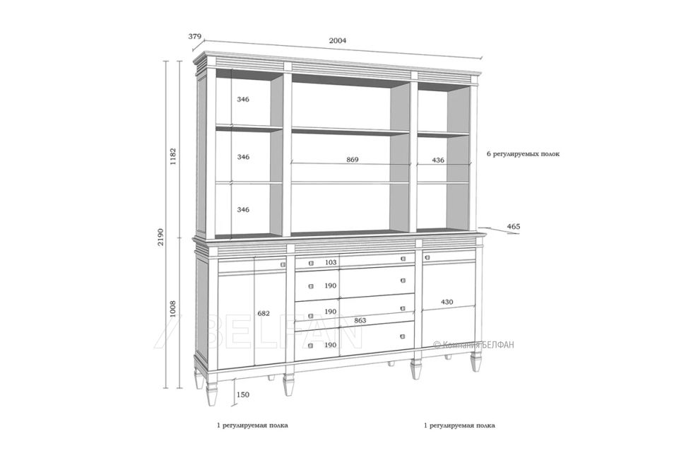Буфет «Ольса» 400/424 выполнен из массива сосны. Удобный и вместительный, очень прост, но при этом функционален. Отлично впишется как в обеденную так и в гостиную. Буфет визуально разделен на 3 секции которые укомплектованы шестью полками сверху, двумя полками снизу за двумя распашными дверями и четырьмя ящиками.