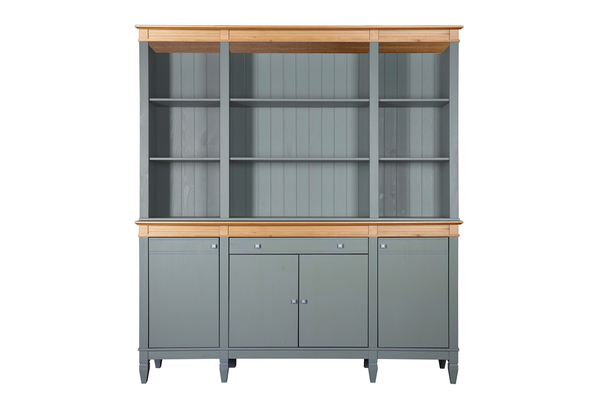 Буфет «Ольса» 400/441 выполнен из массива сосны. Отлично впишется как в обеденную так и в гостиную. Буфет укомплектован шестью полками сверху, тремя полками снизу за распашными дверями и одним ящиком.