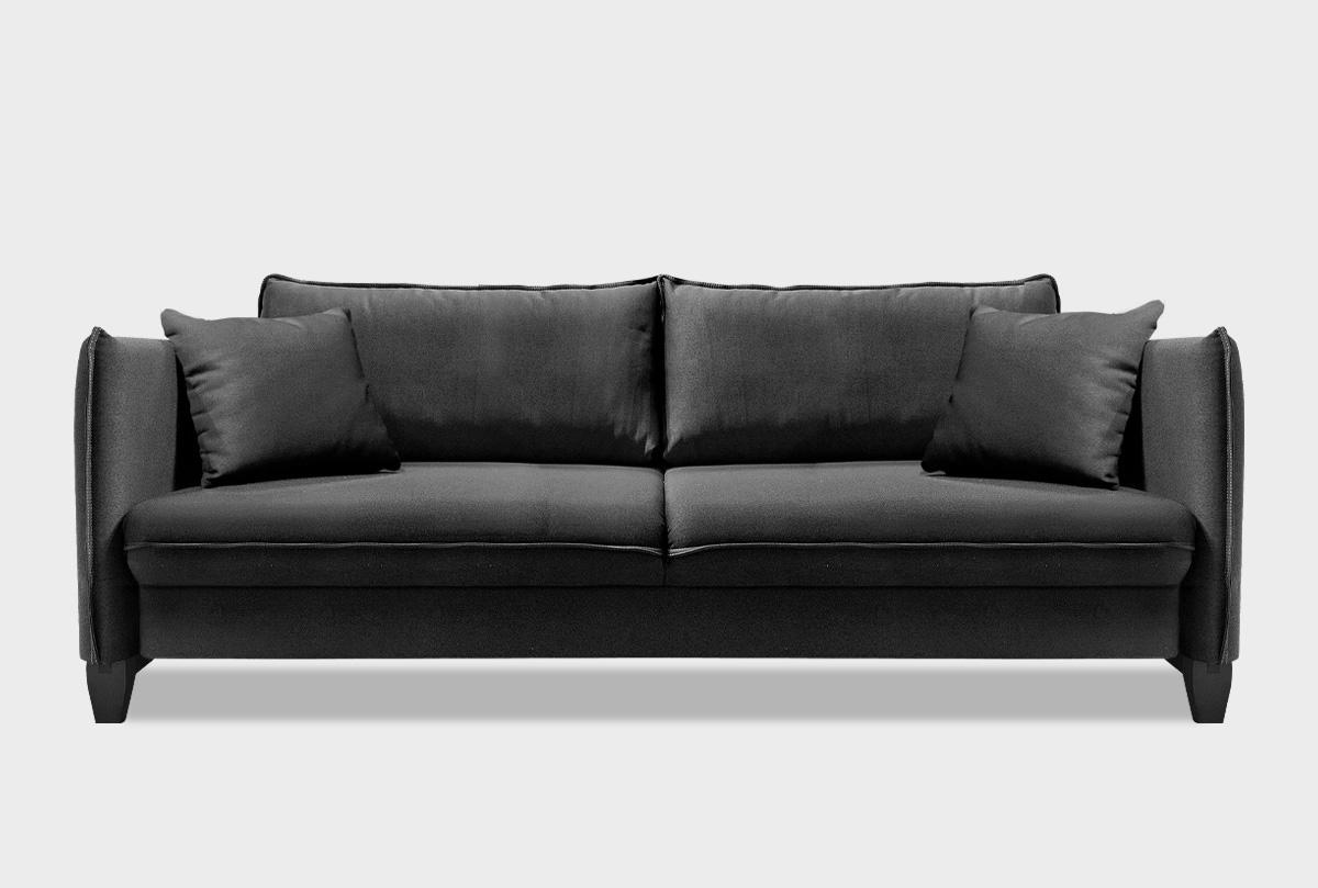 Благодаря широкой палитре оттенков обивки вы можете сделать диван-кровать центром гостиной либо расставить акценты в комнате посредством ярких аксессуаров. Хотите добавить красочных цветов? Контрастный оттенок декоративных подушек, которые идут с диваном в комплекте, создаст нужное настроение. Декоративный кант по контуру сиденья, боковин и приспинных подушек придает дивану изюминку, а пиковка с пуговицами на боковинах делает «образ» завершенным. Диван трехместный, который не оставит равнодушным ни одного ценителя современного стиля.