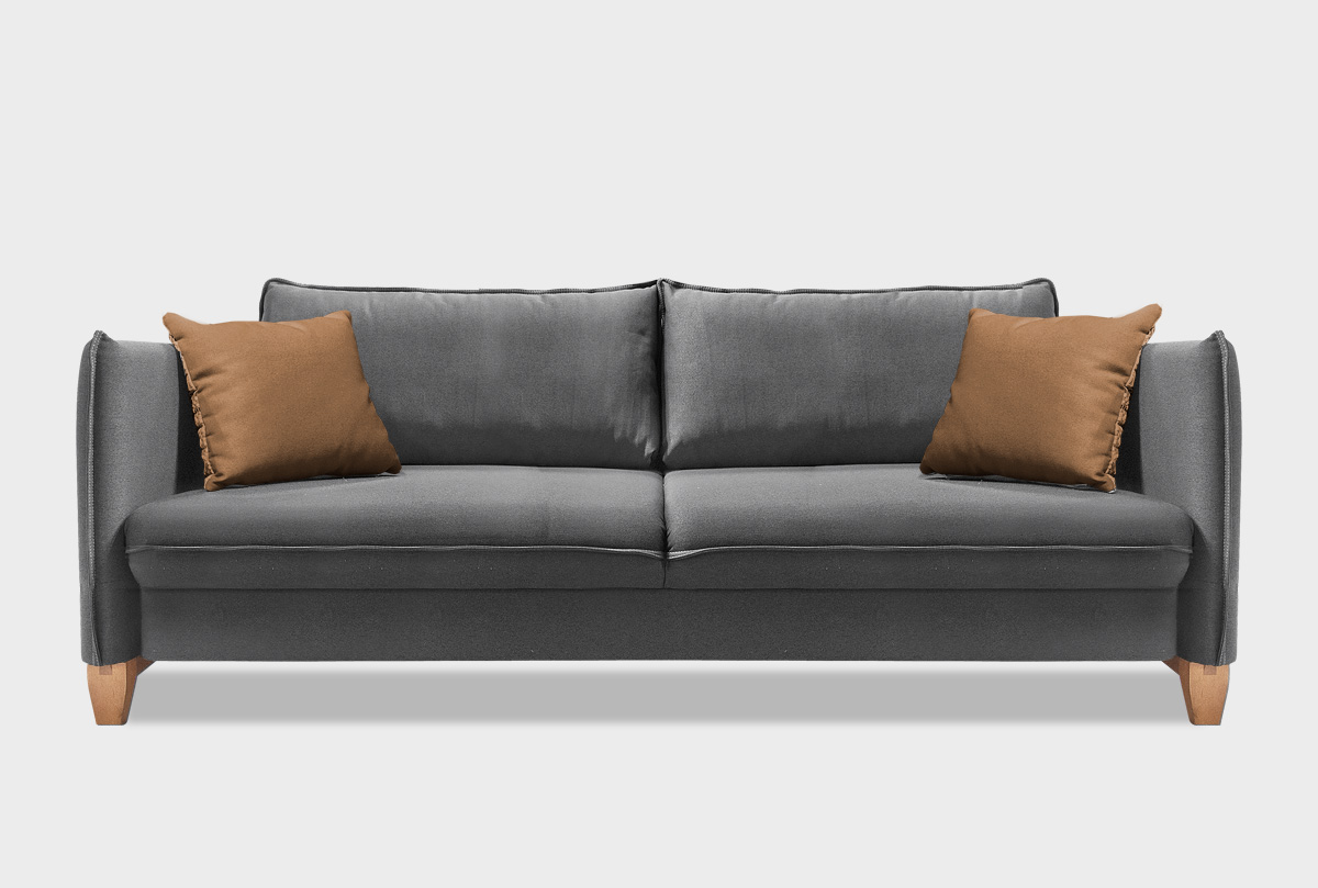 Благодаря широкой палитре оттенков обивки вы можете сделать диван-кровать центром гостиной либо расставить акценты в комнате посредством ярких аксессуаров. Хотите добавить красочных цветов? Контрастный оттенок декоративных подушек, которые идут с диваном в комплекте, создаст нужное настроение. Декоративный кант по контуру сиденья, боковин и приспинных подушек придает дивану изюминку, а пиковка с пуговицами на боковинах делает «образ» завершенным. Диван трехместный, который не оставит равнодушным ни одного ценителя современного стиля.