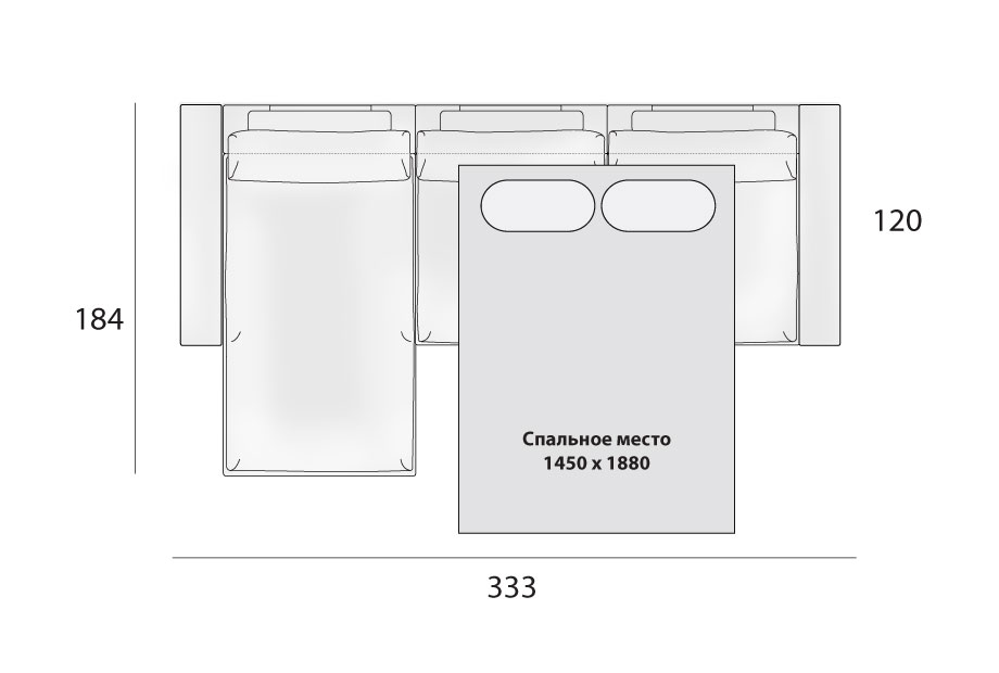 обеспечивает встроенный механизм «Ифагрид (Спартак)» (спальное место 1450 х 1880 мм).