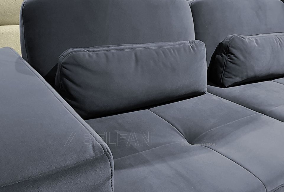 ✅ Спинка дивана снабжена несъемными подпоясничными валиками, которые способствуют расслаблению мышц спины.