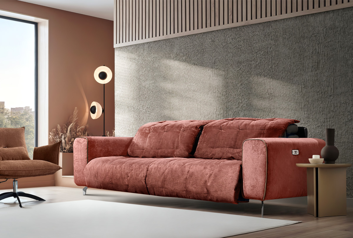Дизайнерский диван двухместный «Грей» отличается тем, что каждый модуль оснащен электрореклайнером, в свою очередь, позволяющим индивидуально настраивать под себя место отдыха или работы. Скромные таланты кроются и в деталях - например, для вашего удобства и гостеприимства мы встроили механизм изменения угла наклона в спинку дивана, а в сиденье механизм выдвижения посадочного места, что прибавляет дивану еще одно комфортное место для отдыха. Своим оформлением прямой диван "Грей" демонстрирует эстетику и многообразие стиля лофт - «мягкие» углы, оптимальный угол посадки и огромная палитра текстиля.