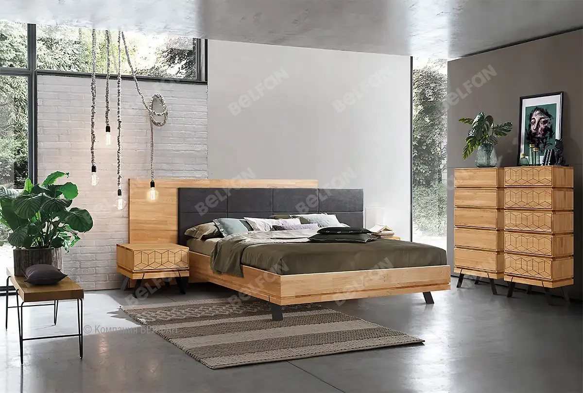 Спальня «Etna» не оставит равнодушными ценителей современной мебели. Прямые минималистичные формы, тонкий корпус, парящие многоуровневые основания, графичный декор на фасадах в сочетании с металлическими ногами – все это делает эту коллекцию уникальной и неповторимой. Все товары коллекции полностью изготовлены из массива дуба с отделкой максимального шлифования и покрытием высокопрочным итальянским паркетным маслом.