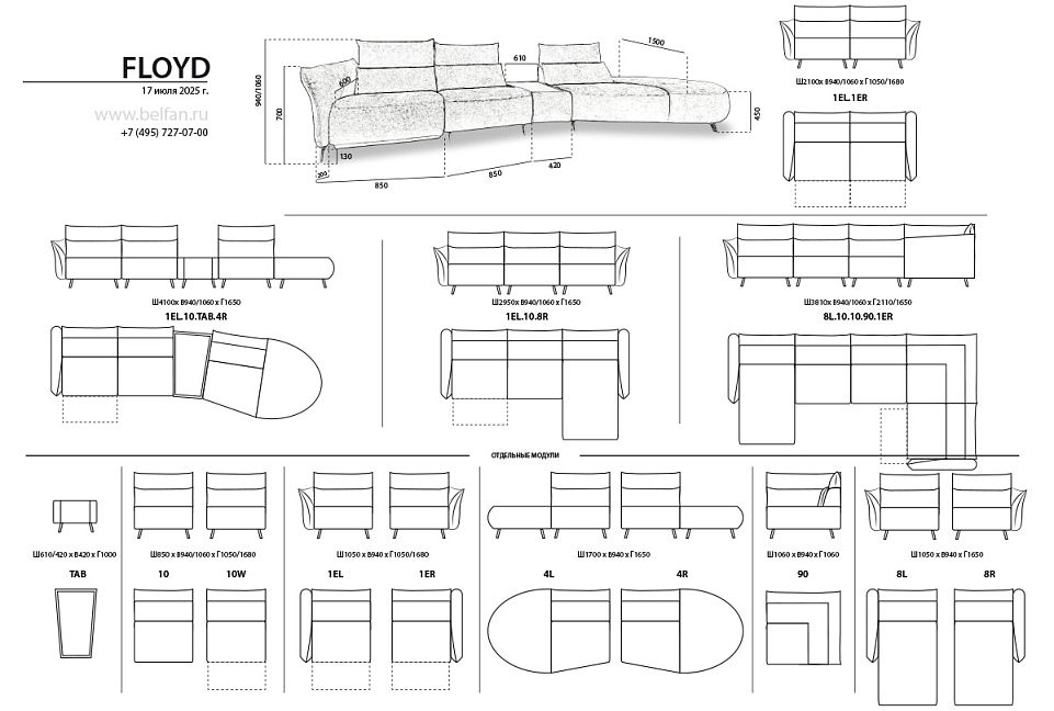 Особенности трехмодульного дивана «Floyd»