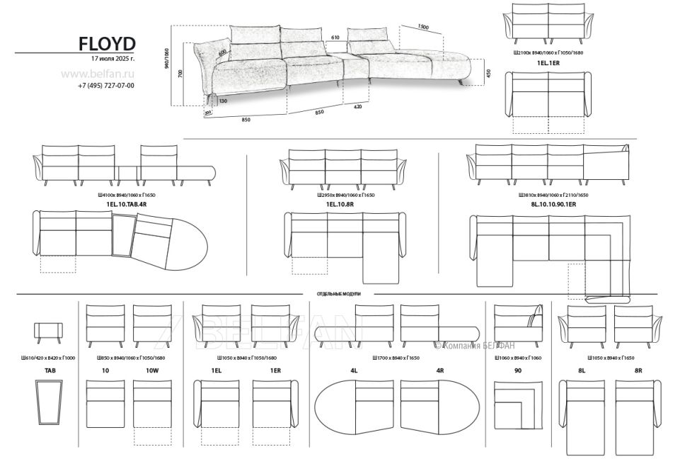 "Floyd" диван индивидуальной модификации, ткань на выбор, (.Г000089266)