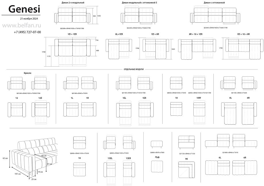 "Genesi" диван 2-х модульный, ткань на выбор, (.Г000087059)