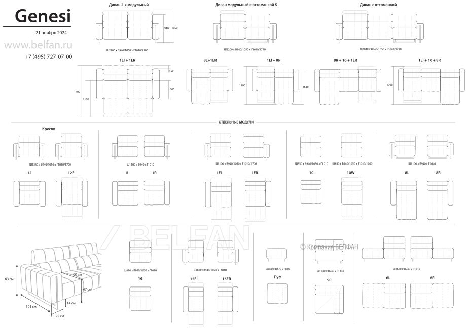 Особенности дивана 3-х модульного «Genesi»: