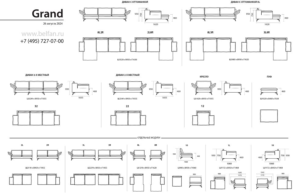 Элегантная коллекция мягкой мебели Grand отличается своим комфортом, а также простым и лаконичным дизайном. Подушки сиденья, спинки и подлокотников имеют декоративные строчки, которые добавляют внешнему виду пышности и оригинальности, а двухстороннее цветовое решение чехлов подушек позволяет создавать свой уникальный дизайн. Тонкие металлические опоры добавляют воздушности и невесомости. Благодаря модульной системе мв сможем подобрать диван в соответствии с Вашим вкусом, пожеланиями к дизайну и условиями помещения. Наполнитель подушек сиденья Memory Foam и сверхмягкий ППУ покорят Вас мягкостью и подарят невероятный комфорт. Купить диван можно в нашем интернет-магазине, а также в магазинах розничной сети в Москве, Санкт-Петербурге, Краснодаре, Тюмени, Екатеринбурге и Новосибирске.
