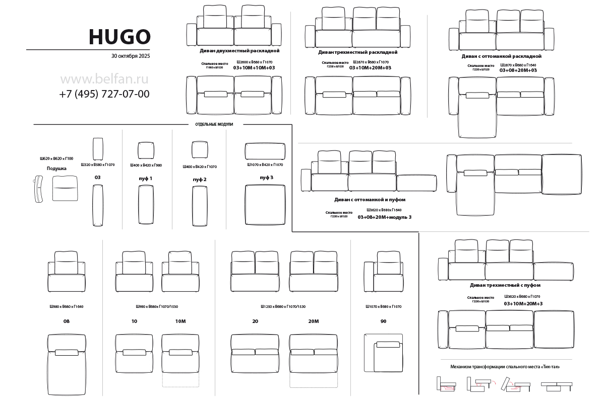 ✅ Секции с модулем 03 (подлокотник) поставляются отдельно в разобранном виде с зацепами.