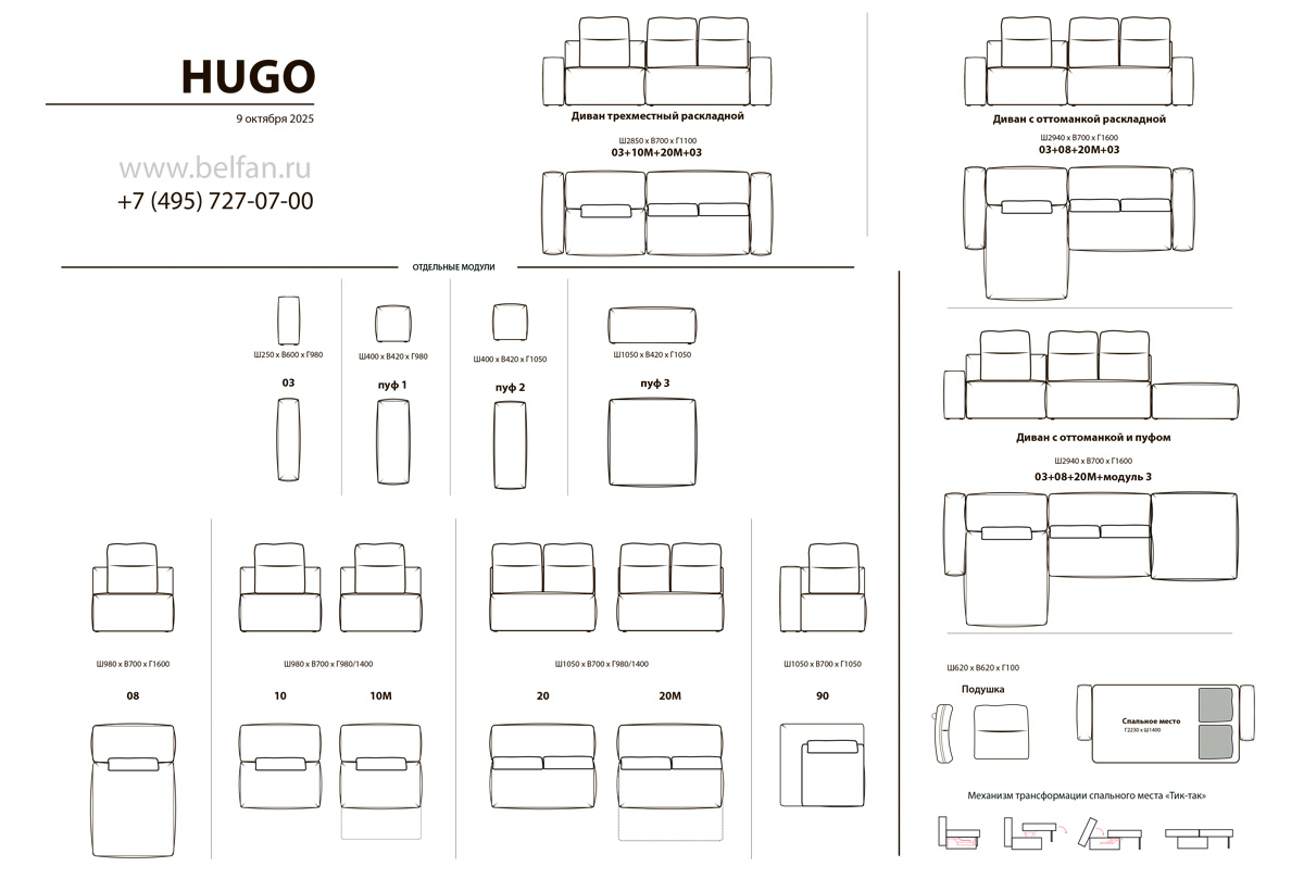 Особенности дивана "HUGO" дивана с оттоманкой и пуфом