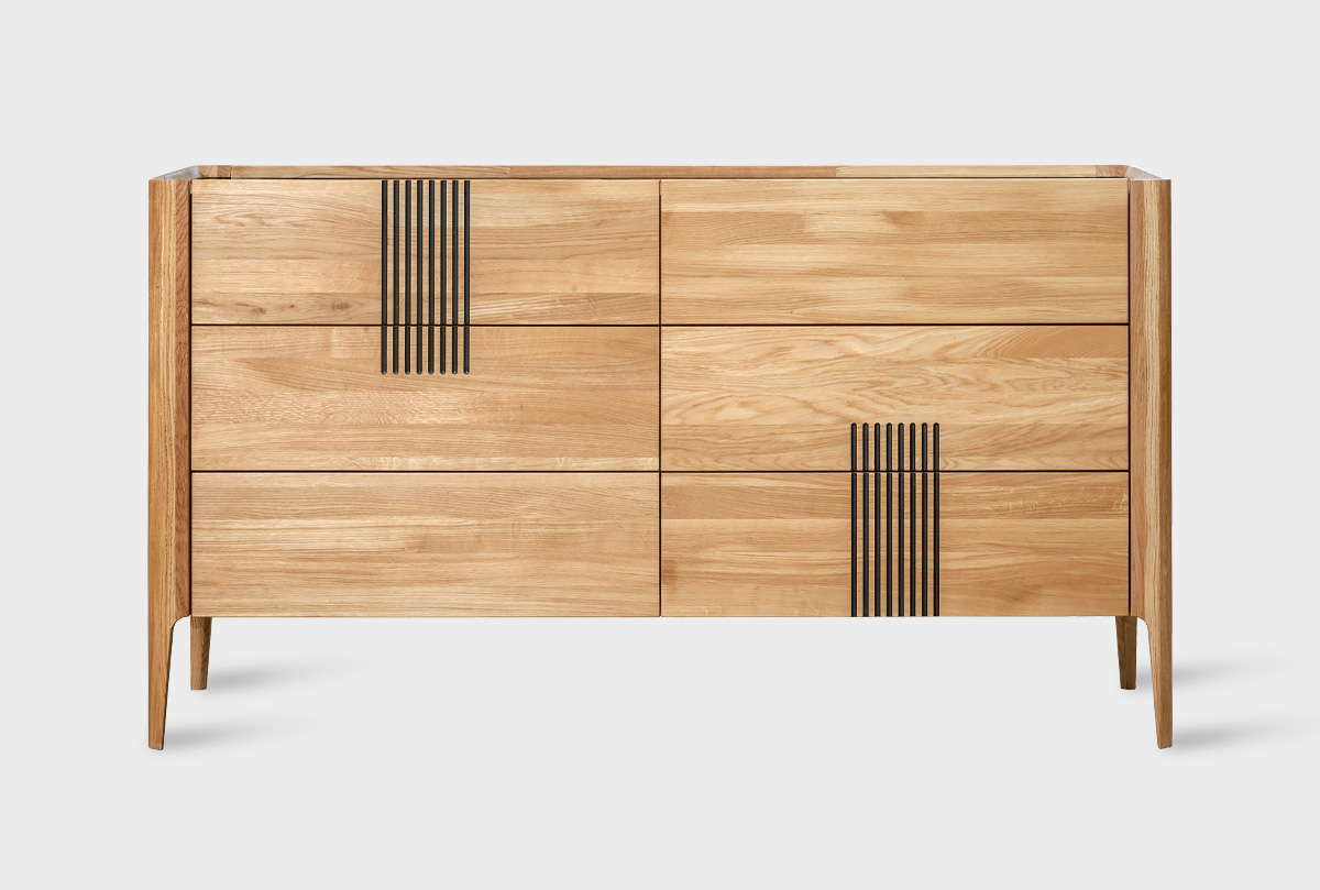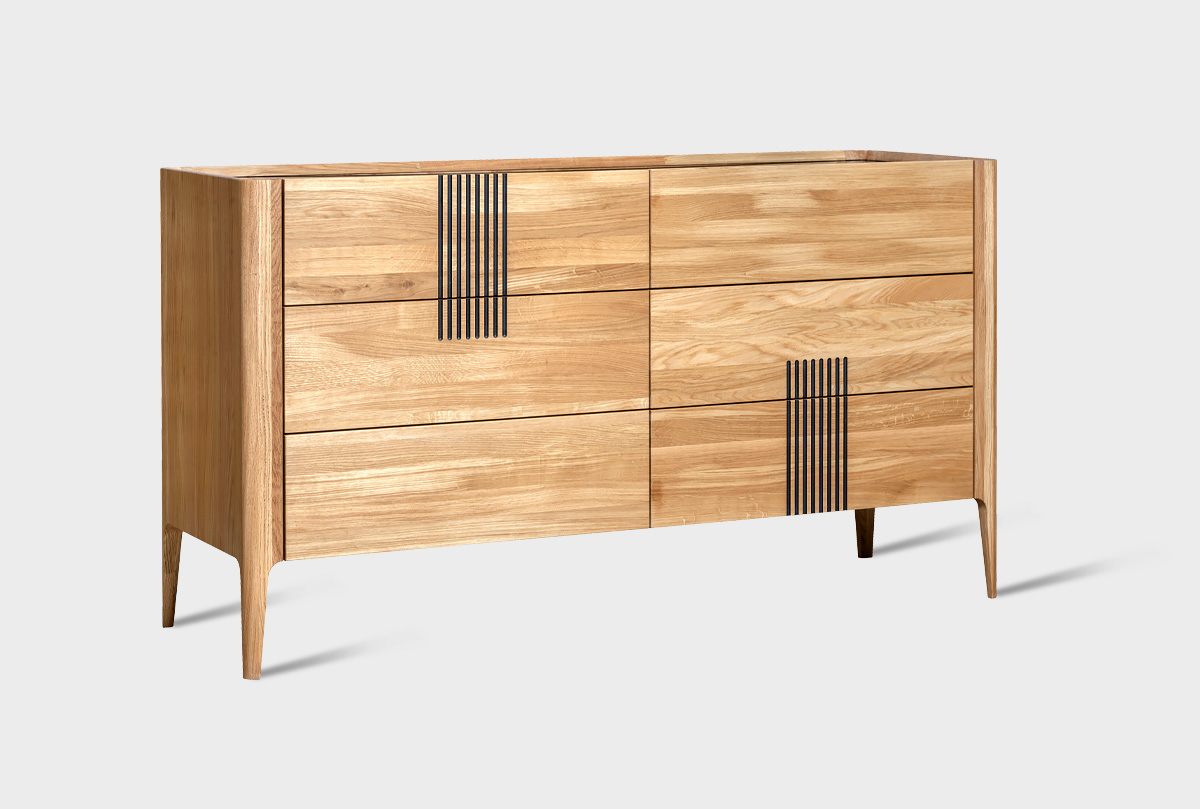 Особенности широкого комода «Bergamo» 6 (Бергамо) в цвете «дуб натуральный» шириной 140 см: