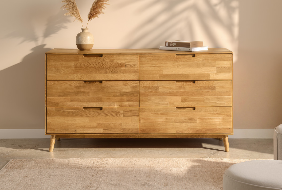Комод «Ирвинг» 4 визуально лёгкий и одновременно основательный. Такой эффект достигается за счёт тонкого корпуса и сужающихся книзу ножек, придающих конструкции ощущение парящей геометрии. Изготовленный из массива дуба и покрытый экологичным составом, комод «Ирвинг» — это не просто мебель, а элемент уюта, красоты и заботы на каждый день.