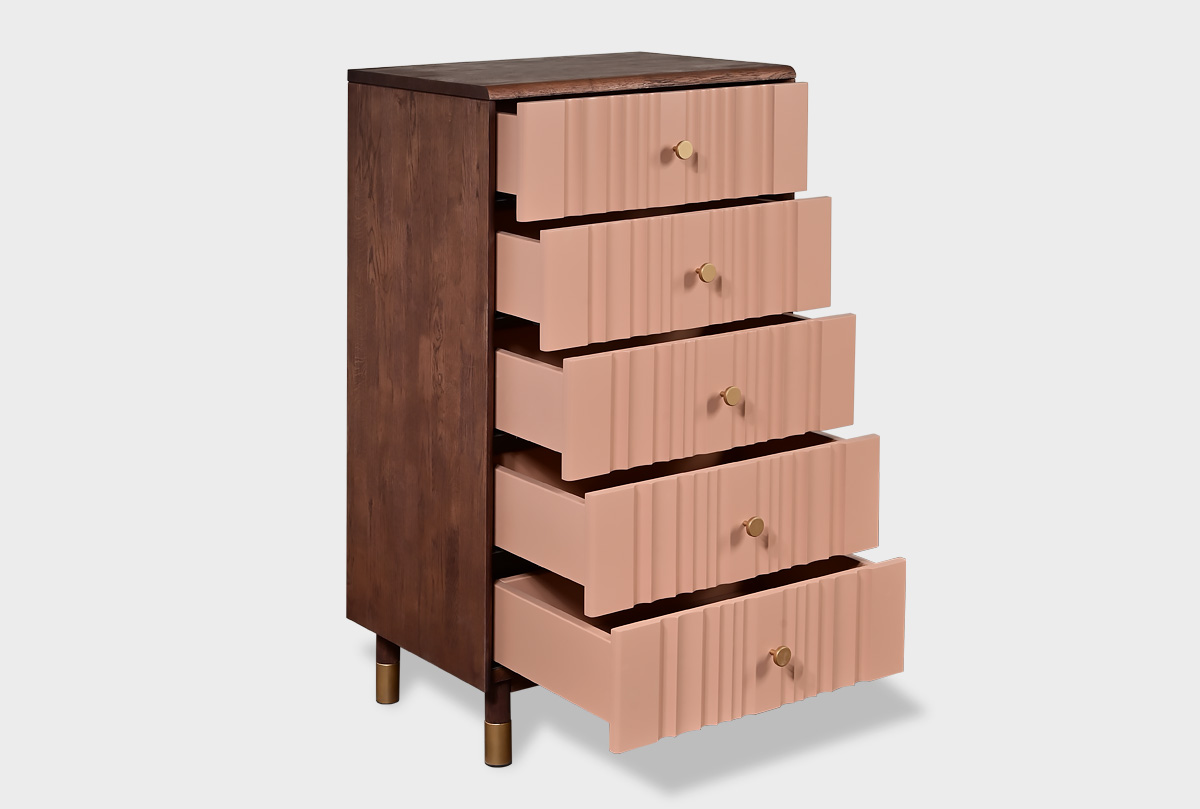 Комод «Меридиан» 5 (высокий) — это утончённое решение для компактного и элегантного хранения. Вертикальная композиция из пяти ящиков делает его визуально лёгким, но при этом вместительным и функциональным.