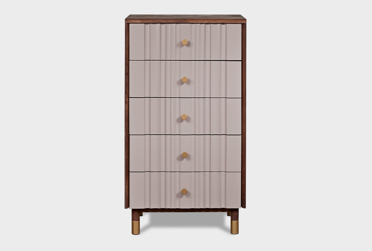 Комод «Меридиан» 5 (высокий) — это утончённое решение для компактного и элегантного хранения. Вертикальная композиция из пяти ящиков делает его визуально лёгким, но при этом вместительным и функциональным.