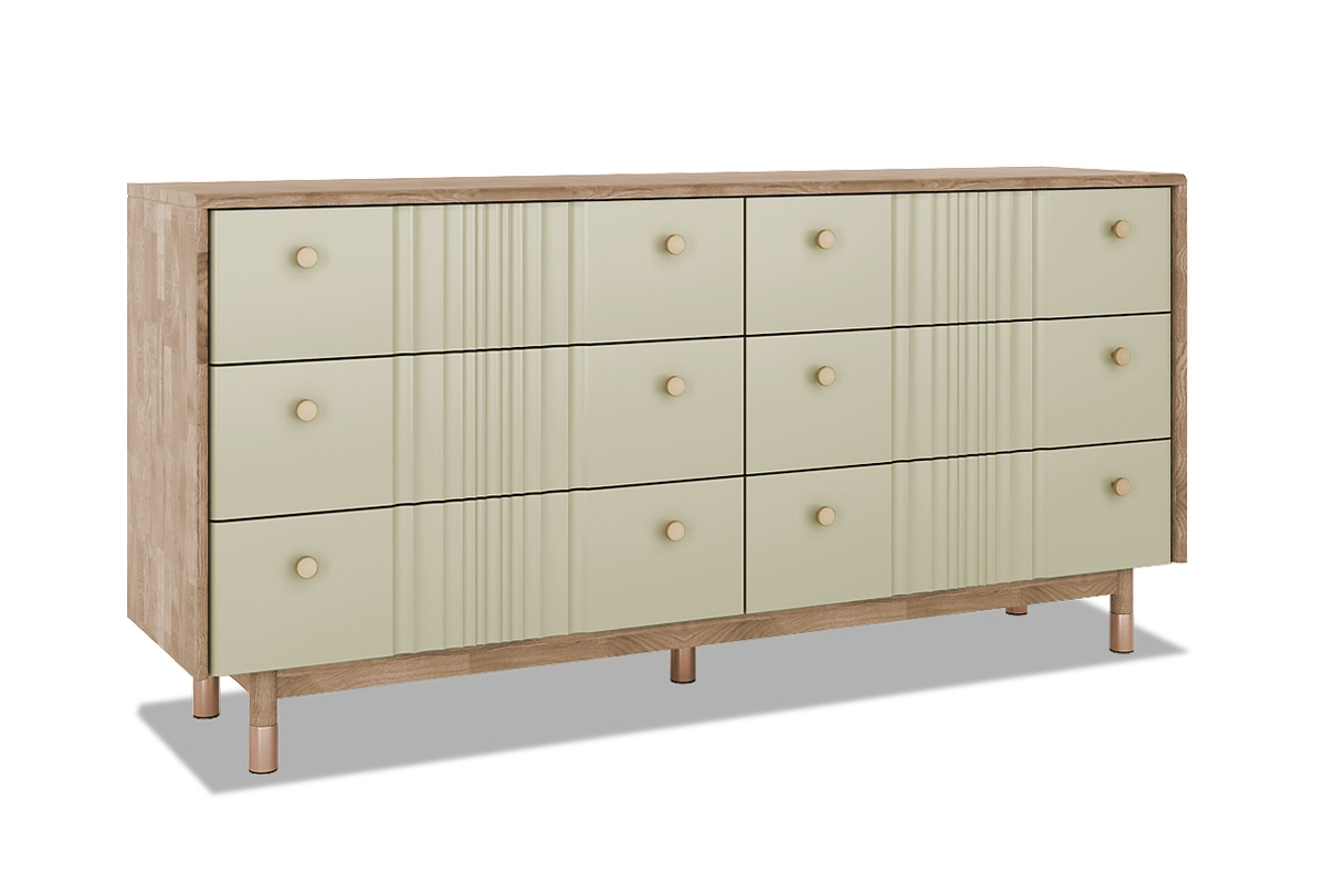 Комод «Меридиан» 6 — это настоящая симфония форм и функциональности. В нём прекрасно сочетается архитектурная чёткость и мягкость линий, а шесть выдвижных ящиков позволяют организовать пространство с комфортом и стилем.
