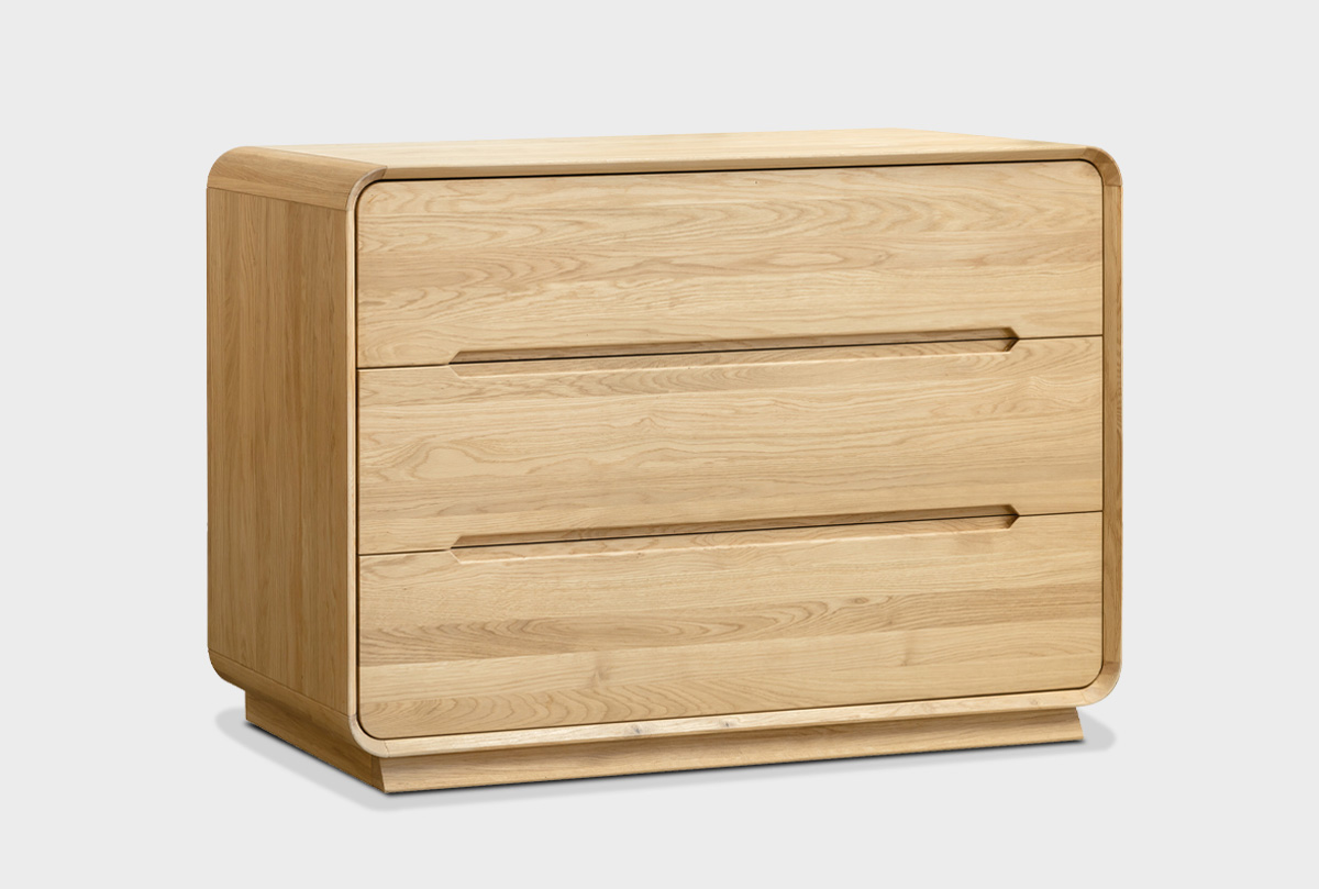 Комод «Монблан» 3 в цвете «бейц-масло» станет незаменимым элементом организации пространства спальни или гостиной. Его мягкие закруглённые контуры и утопленные фасады с графическими профиль-нишами подчеркивают минималистичную элегантность и современный стиль.