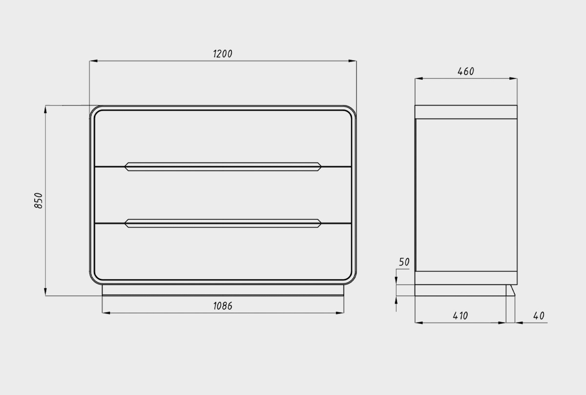 ✅ Размеры комода – ширина 1200 мм, высота 850 мм, глубина 460 мм – идеально подходят как для просторных, так и для компактных помещений.
