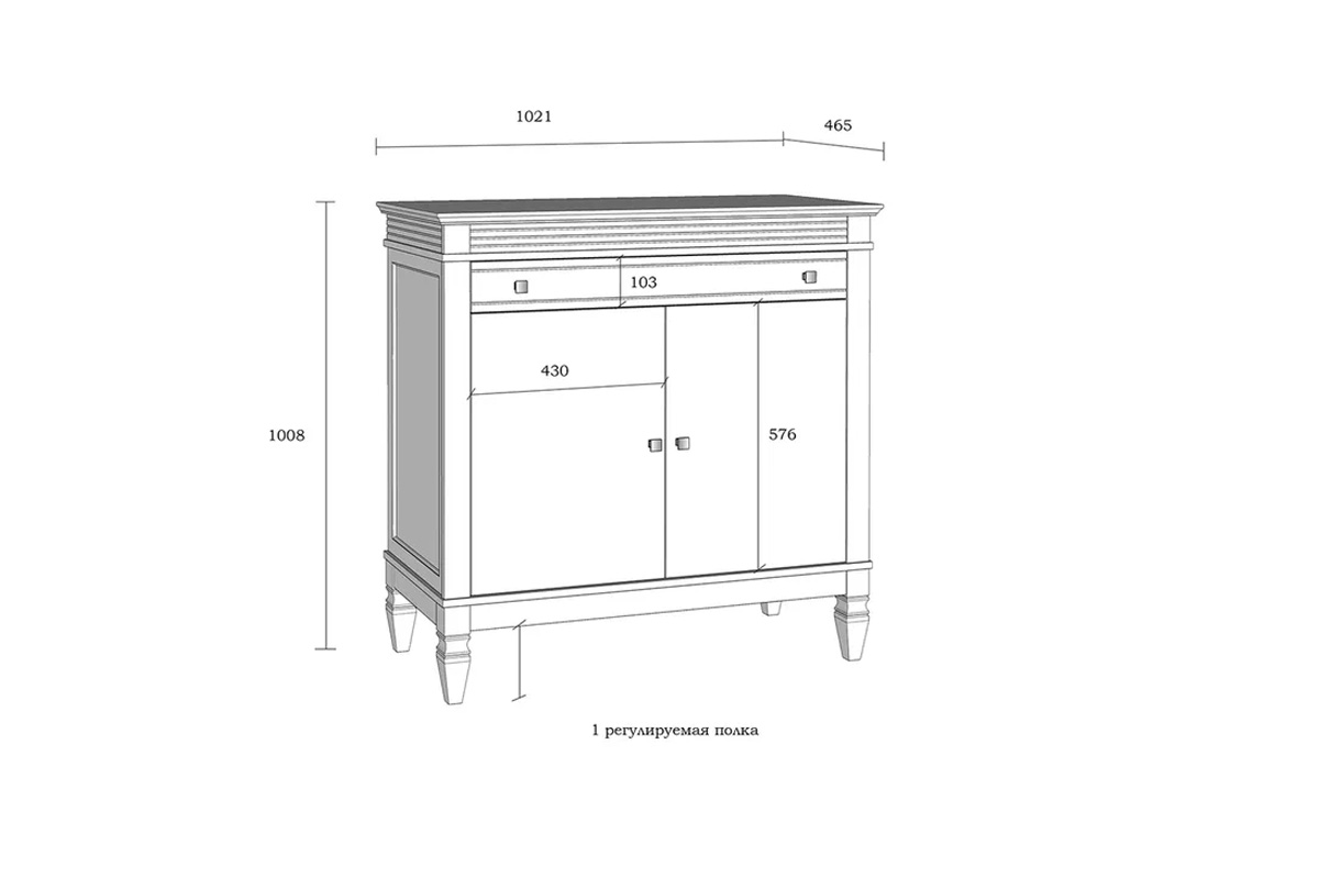 Комод "Ольса" 221, белый лак + антик 24, (.Г000083890)