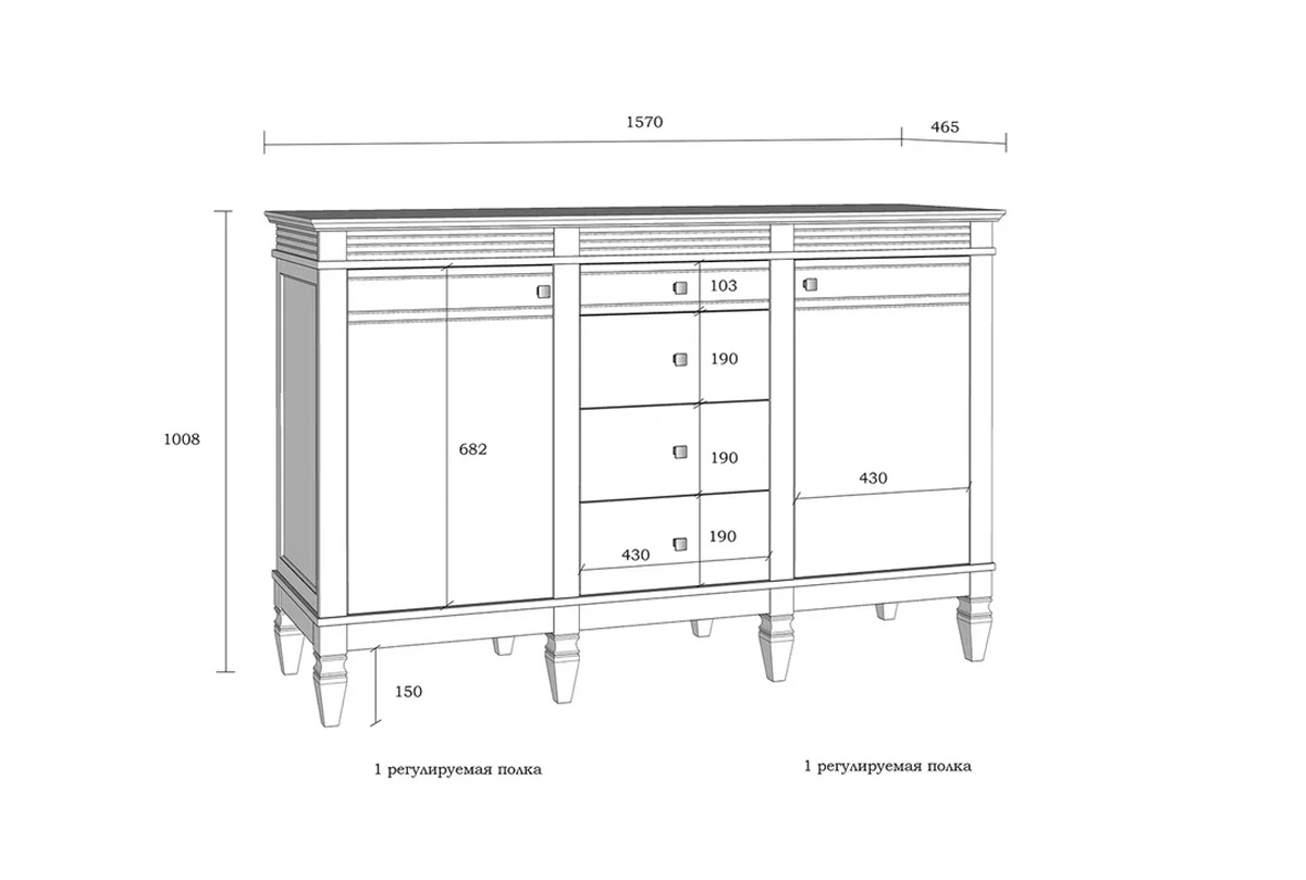 Комод «Ольса» 324 (2 двери, 4 ящика) из массива сосны. Он оборудован выдвижными ящиками на направляющих скрытого монтажа По бокам расположены отделения с полками за распашными дверями. Классические ручки в форме квадрата изготовлены из металлаi.
