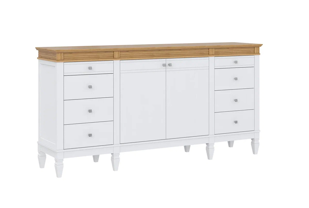 Комод «Ольса» 428 (2 двери, 8 ящиков) из массива сосны. Фурнитура на дверях и ящиках с доводчиками. Высокие ножки обеспечивают оптимальный доступ при уборке.