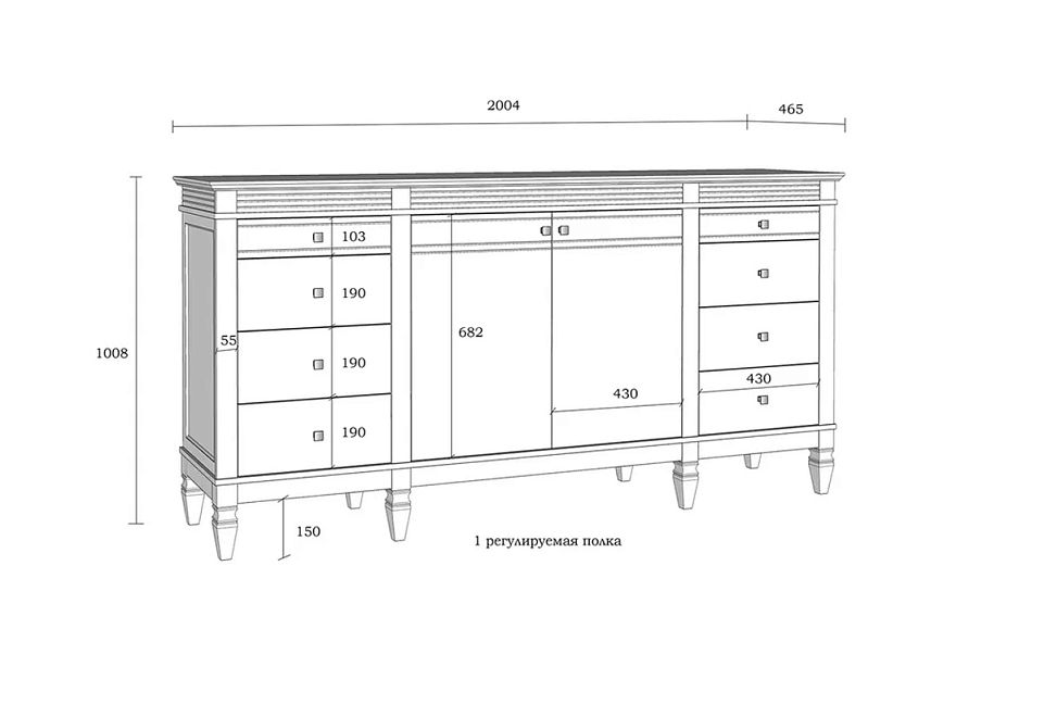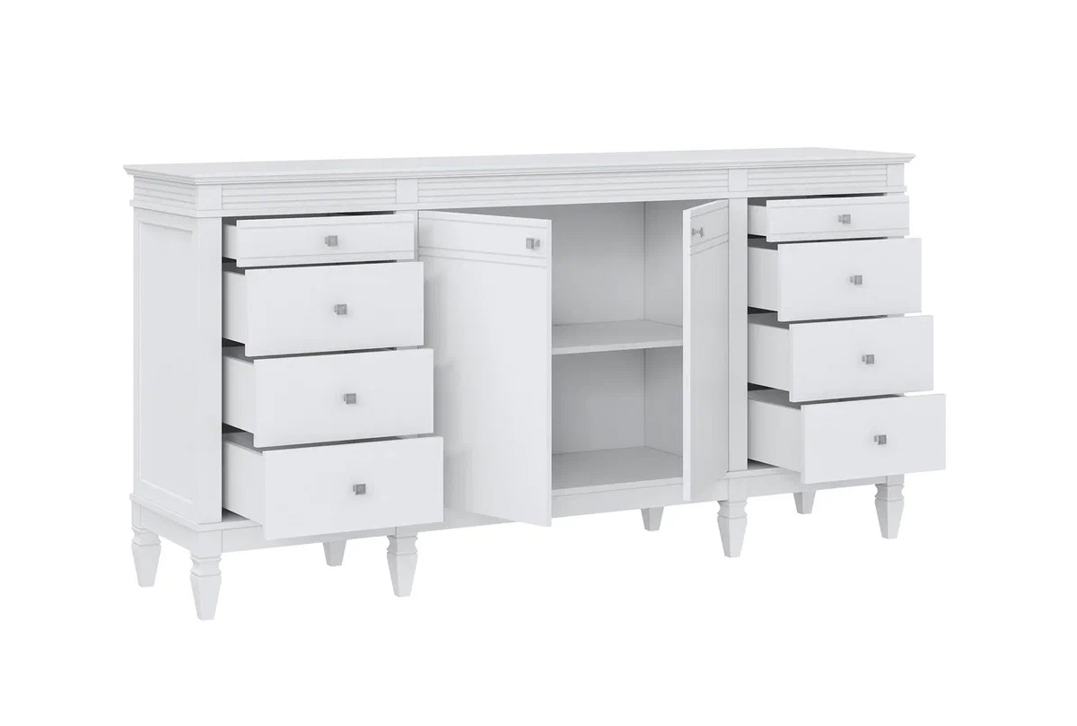 Комод «Ольса» 428 (2 двери, 8 ящиков) из массива сосны. Фурнитура на дверях и ящиках с доводчиками. Высокие ножки обеспечивают оптимальный доступ при уборке.