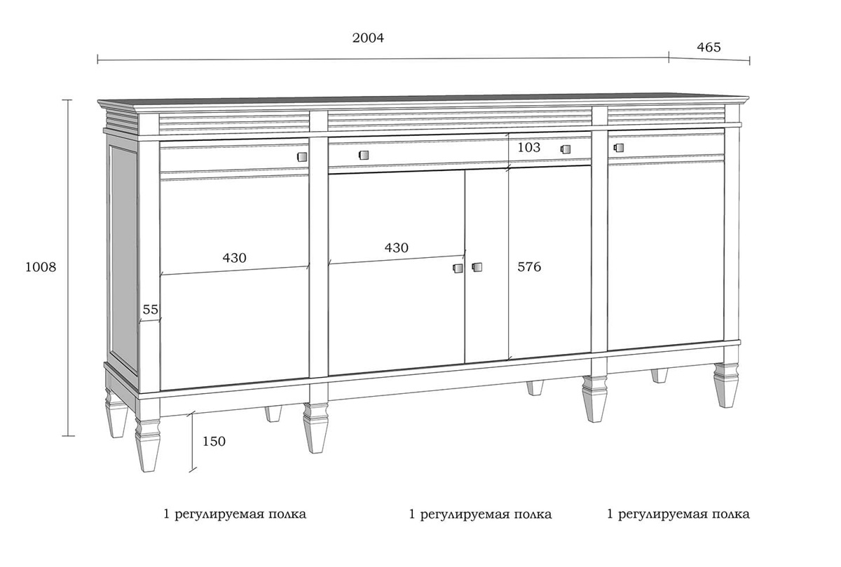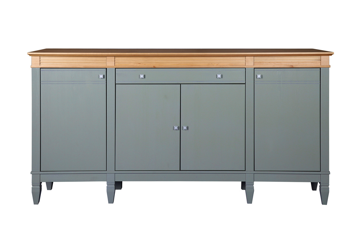 Комод «Ольса» 441 оснащен четырьмя распашными дверками с полками внутри и одним широким ящиком. Фурнитура на дверях и ящике с доводчиками. Высокие ножки обеспечивают оптимальный доступ при уборке.