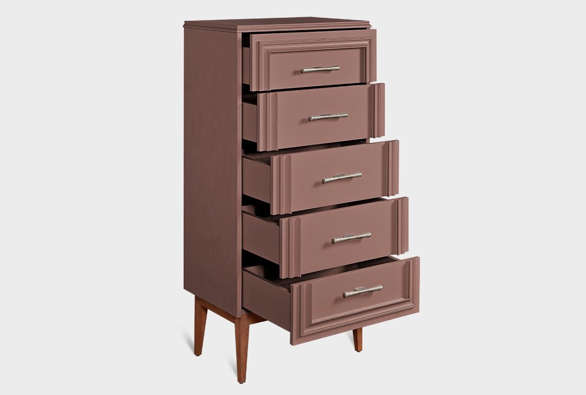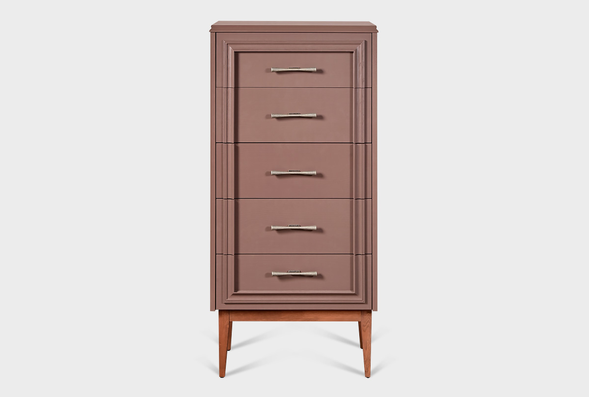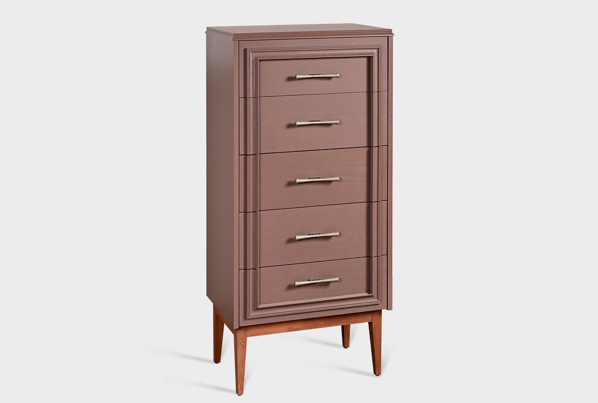 Высокий комод «Сакраменто» в цвете «кашемир, орех» с пятью ящиками из дуба.