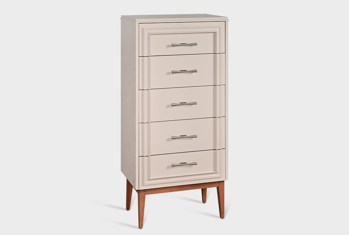 Высокий комод «Сакраменто» в цвете «марципан, орех» с пятью ящиками из дуба.