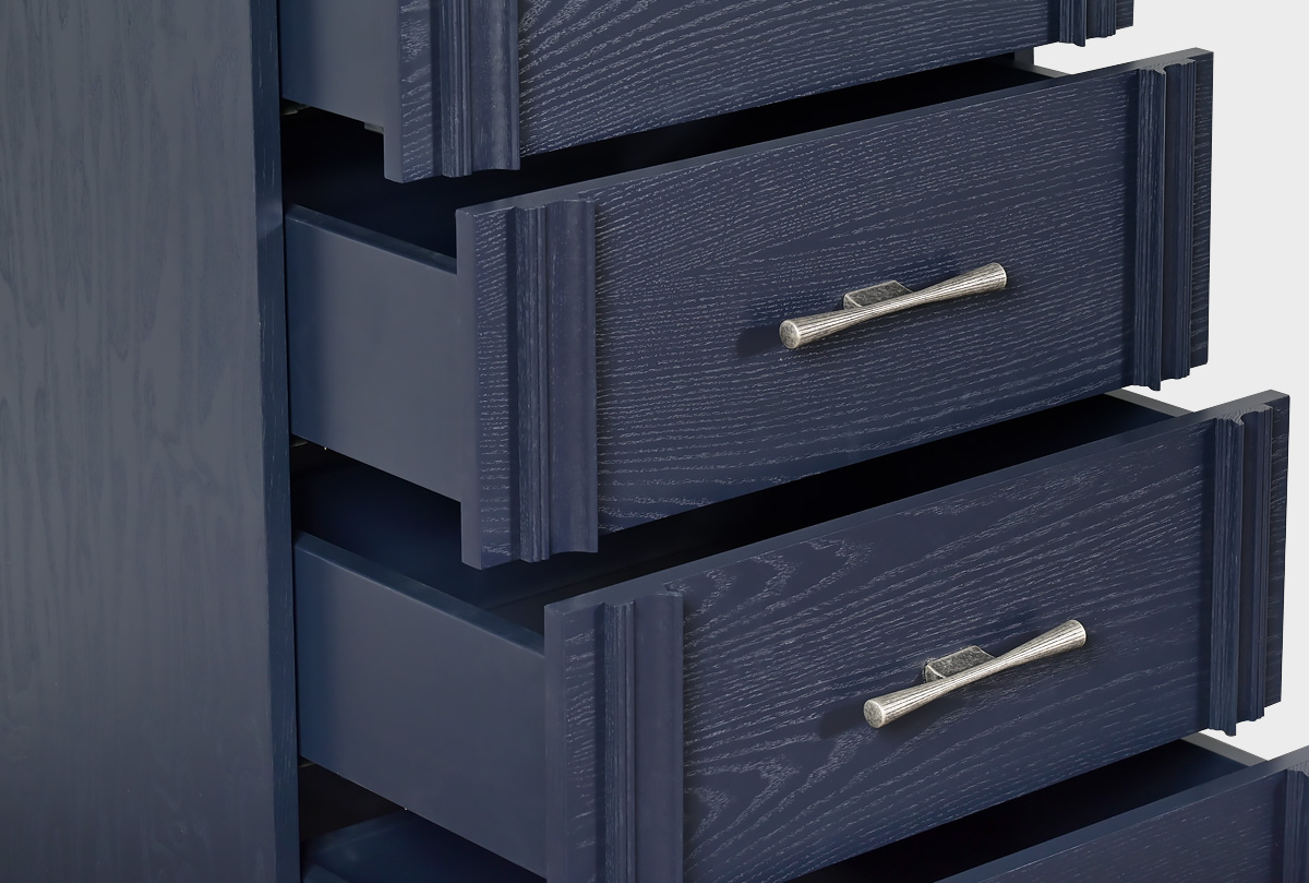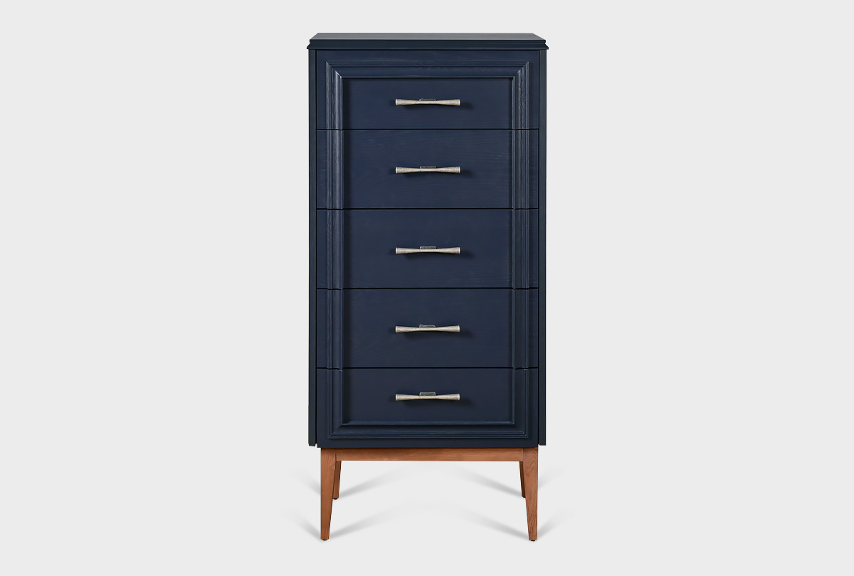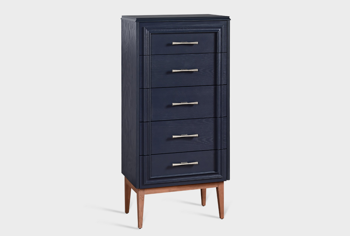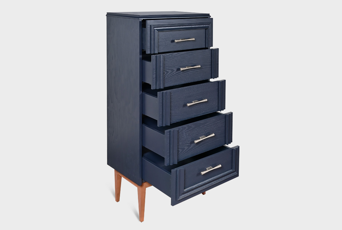 Высокий комод «Сакраменто» в цвете «сумеречный, орех» с пятью ящиками из дуба.