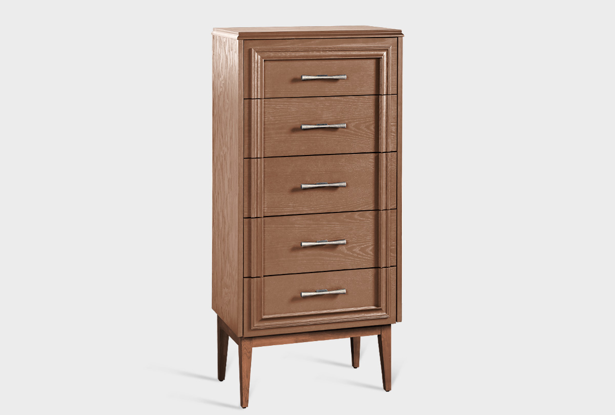 Комод высокий Сакраменто с пятью ящиками из дуба.