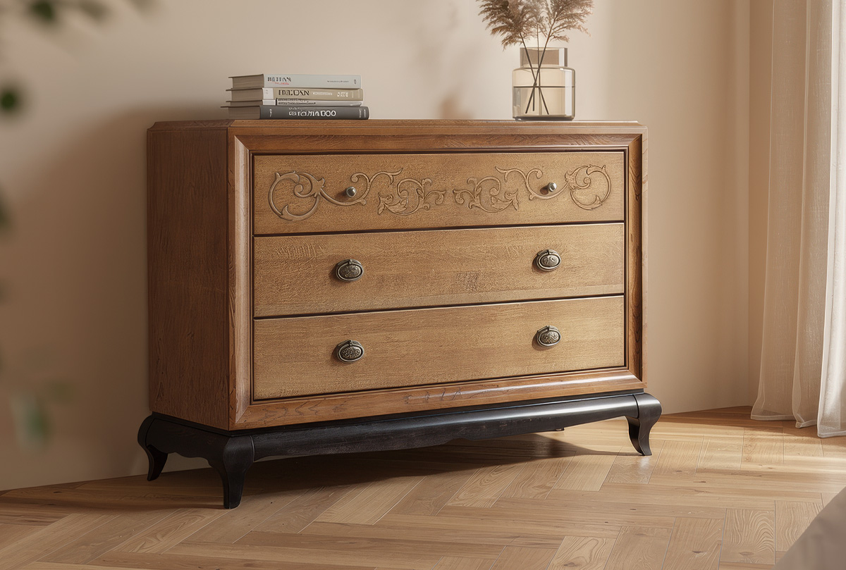 ✅ Комод изготовлен из массива и шпона дуба.