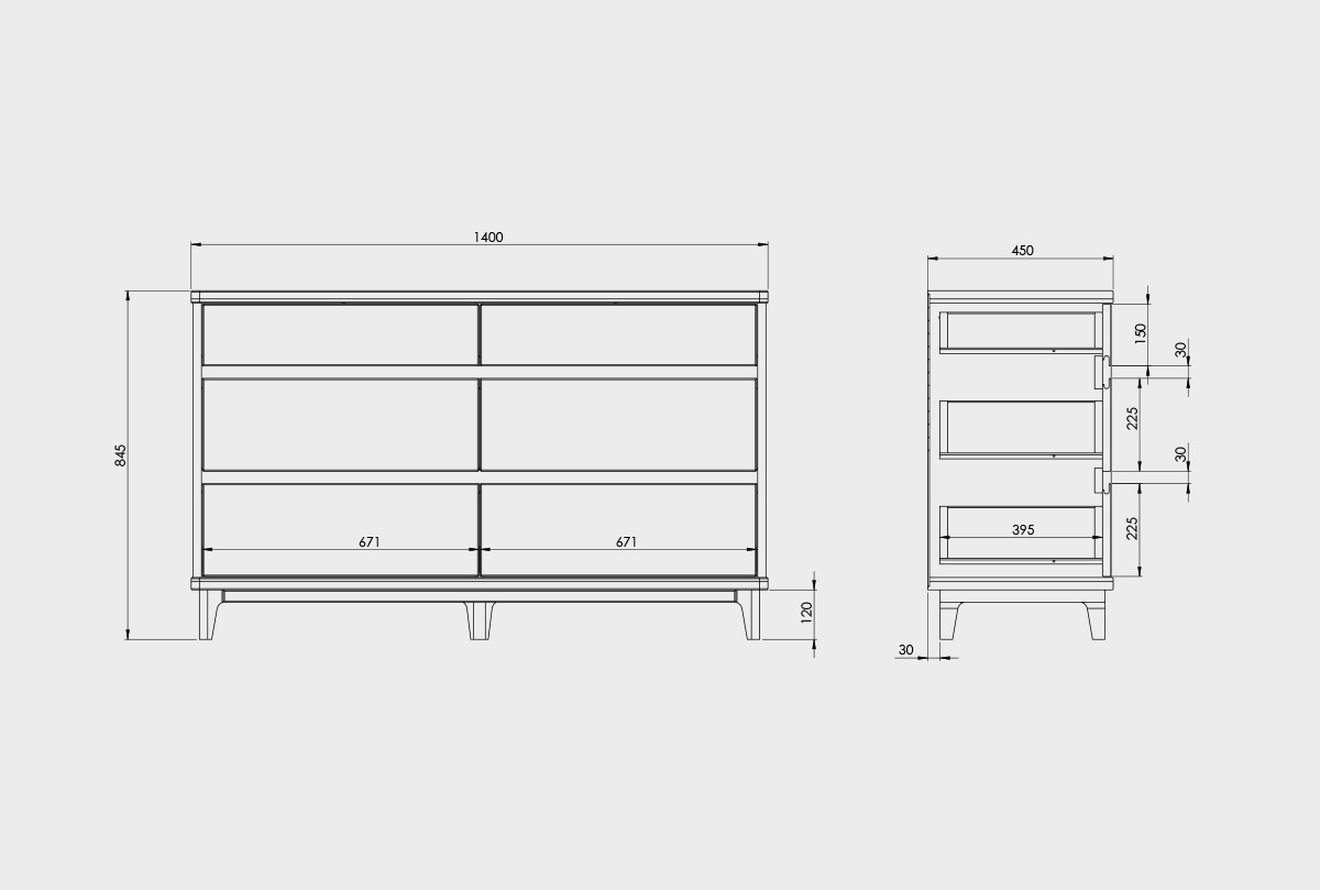 ✅ Комод изготовлен из комбинации материалов - массива дуба и эмали. Из массива дерева изготовлен корпус и вставки комода.