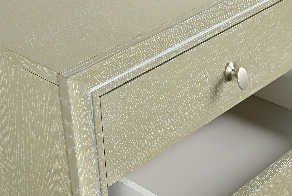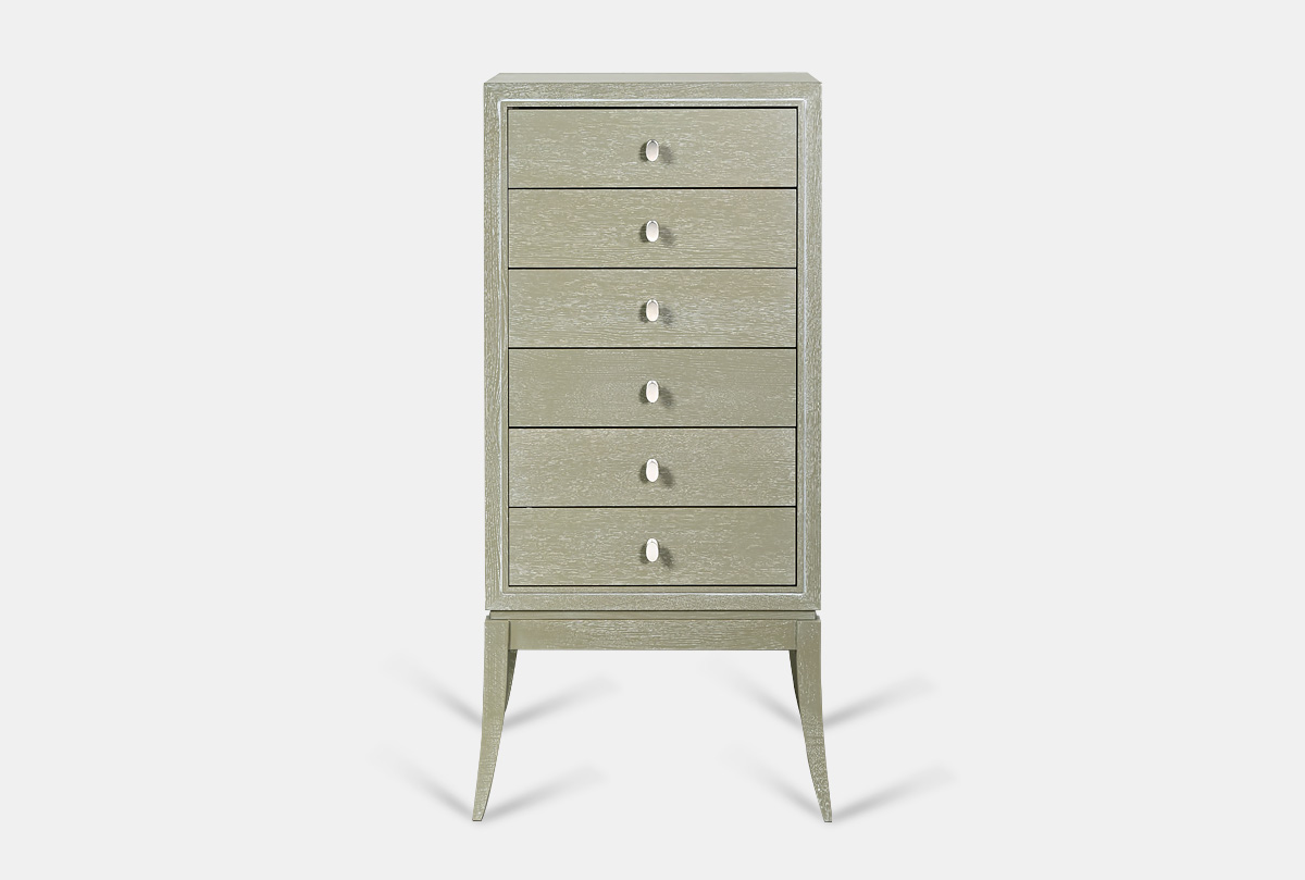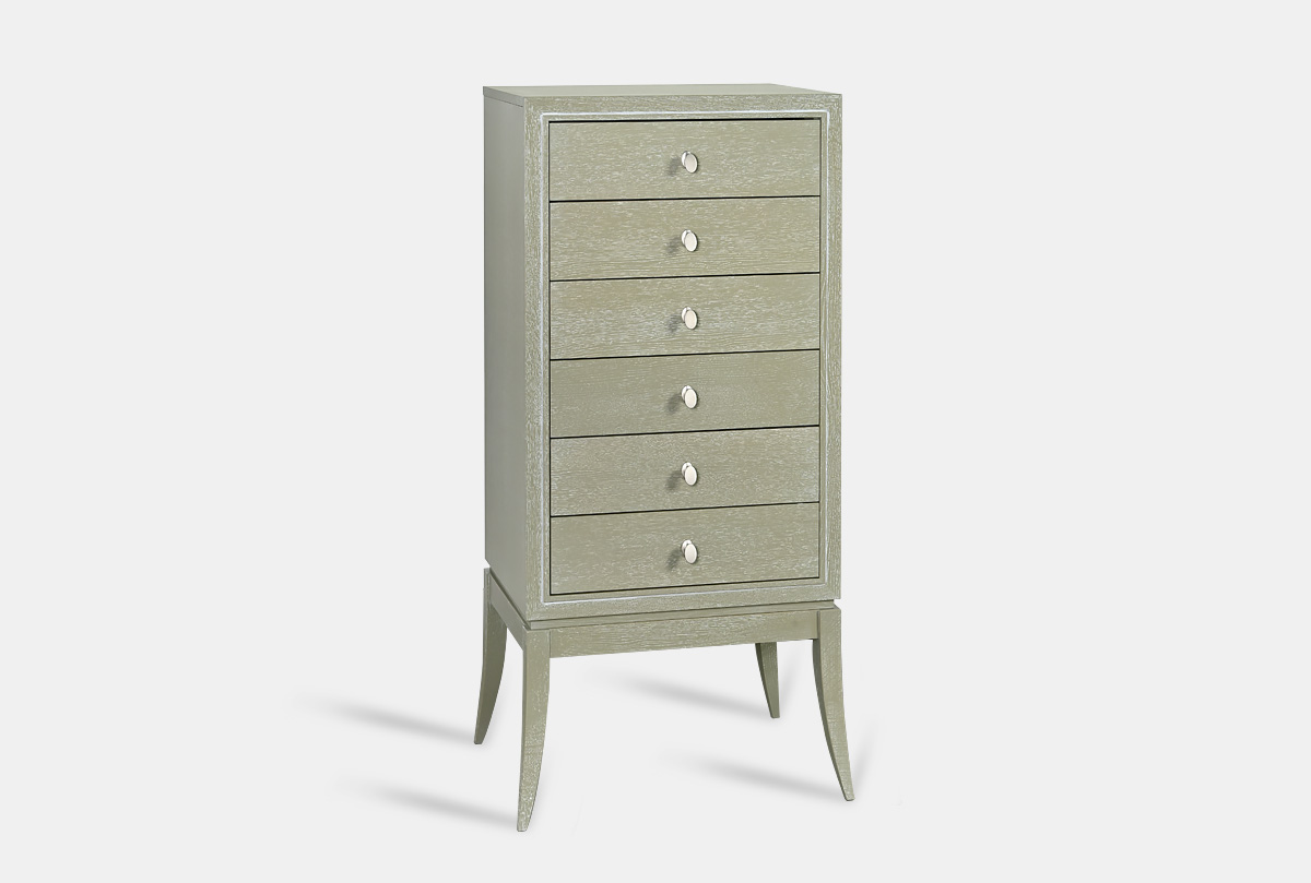 Уникальный высокий комод «Costa» сочетает в себе всё то, что так нравится любителям современной классики. Высокие гнутые ножки, благородный цвет «олива с белой патиной», минималистичная итальянская фурнитура – всё это нашло воплощение в высоком комоде «Costa». Комод не только идеален в дизайне, но и функционален. У него есть три глубоких выдвижных ящика, где можно удобно разместить постельное белье и одежду. Дно каждого ящика выстлано мягчайшим велюром для более бережного хранения любимых вещей.