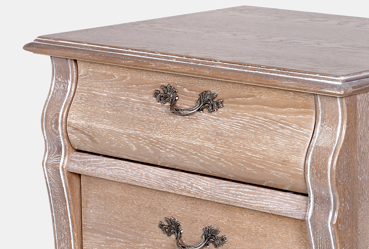 Комод высокий «Оскар» 01 в цвете «амбэр с белой патиной» с шестью ящиками, из массива и шпона дуба, он станет достойным украшением любой спальни.