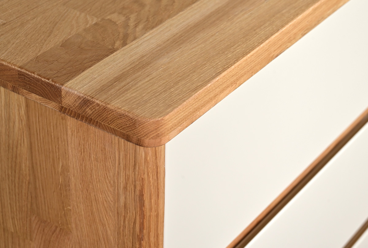 ✅ Комод изготовлен из комбинации материалов - массива дуба и эмали. Из массива дерева изготовлен корпус комода.